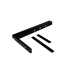 Виріб складається зі склотримача та настінного вузла з можливістю регулювання. Щілинний отвір у кронштейні дозволяє точно виставити положення штанги та компенсувати нерівності поверхні. Приховане кріплення зберігає охайний вигляд, а матове покриття black matt підкреслює преміальний стиль.