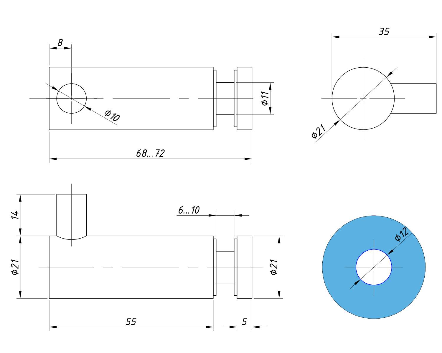 - Глибина: 55 мм.