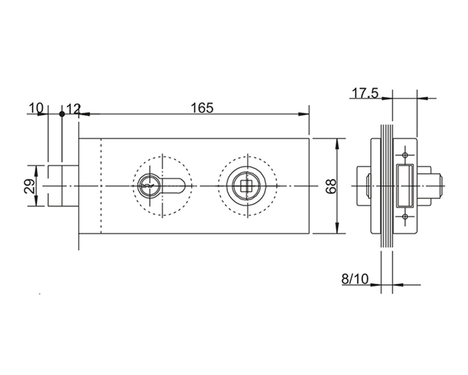 Прямокутна форма замку для скляних дверей відмінно підходить для любителів мінімалізму в дизайні. Декоративні кришки фурнітури можуть бути виконані з анодованого алюмінію, а також матової та полірованої нержавіючої сталі.