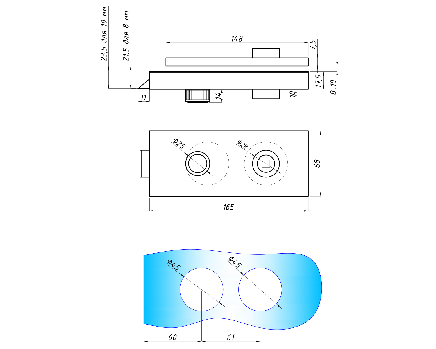 Декоративні кришки міжкімнатної фурнітури можуть бути виконані з анодованого алюмінію, а також матової та полірованої нержавіючої сталі.
