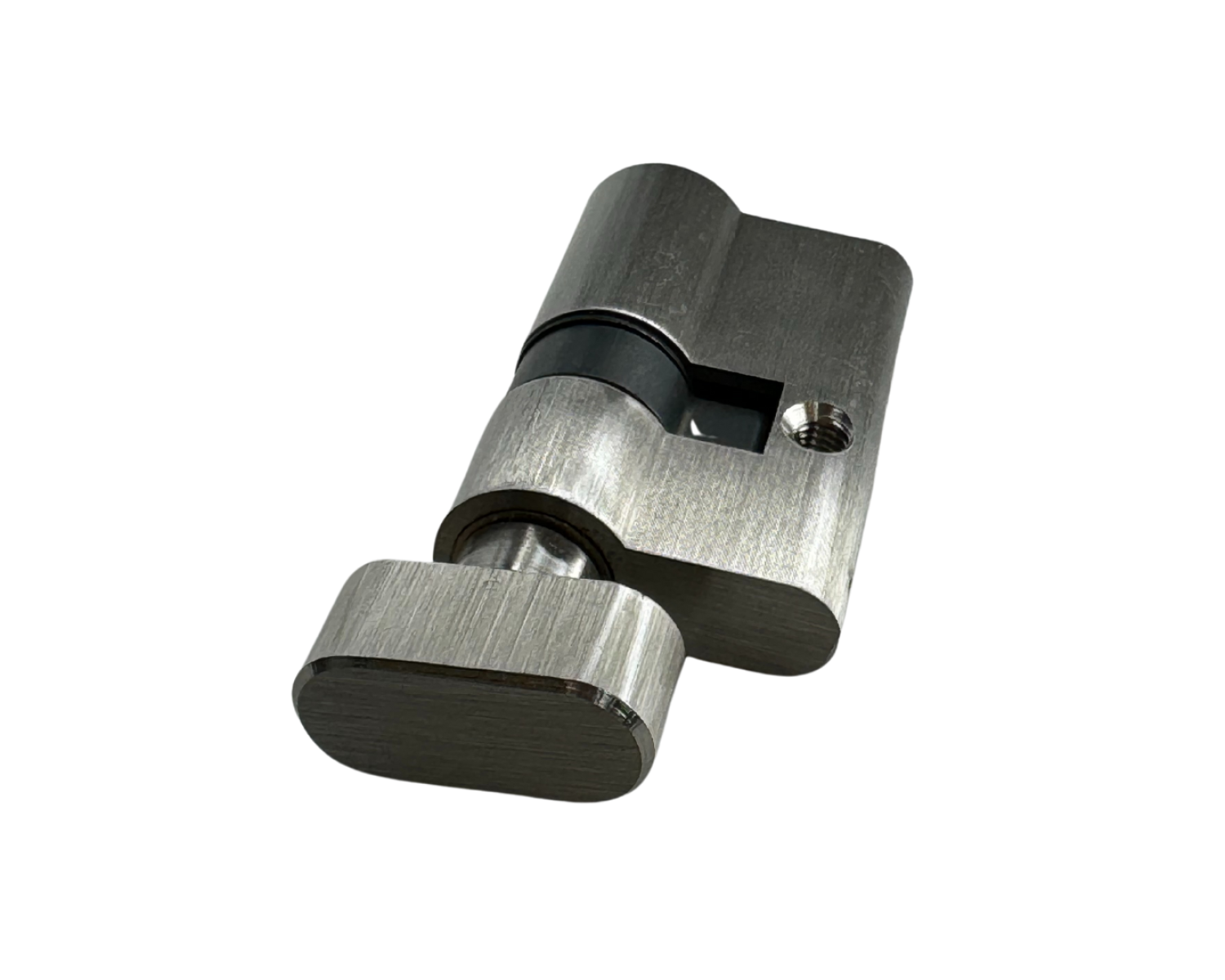Розміри циліндру для міжкімнатного замку 20*30 мм. Такі розміри інтер’єрної фурнітури роблять його універсальним та дозволяють використовувати його практично з усіма замками для скляних перегородок, розрахованими на замикання під ключ.