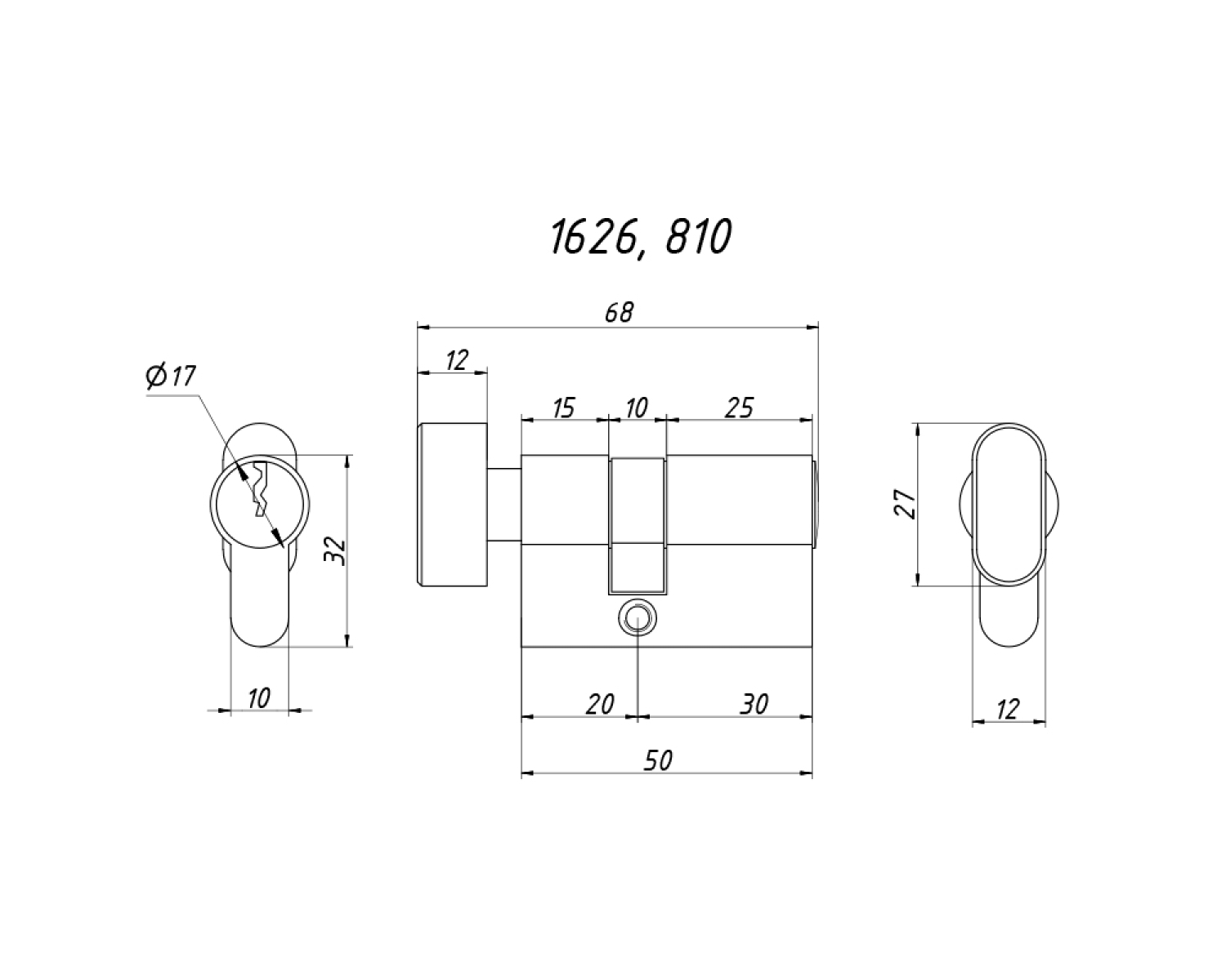 Основні характеристики 1626 Циліндр ключ-баранчик, 810