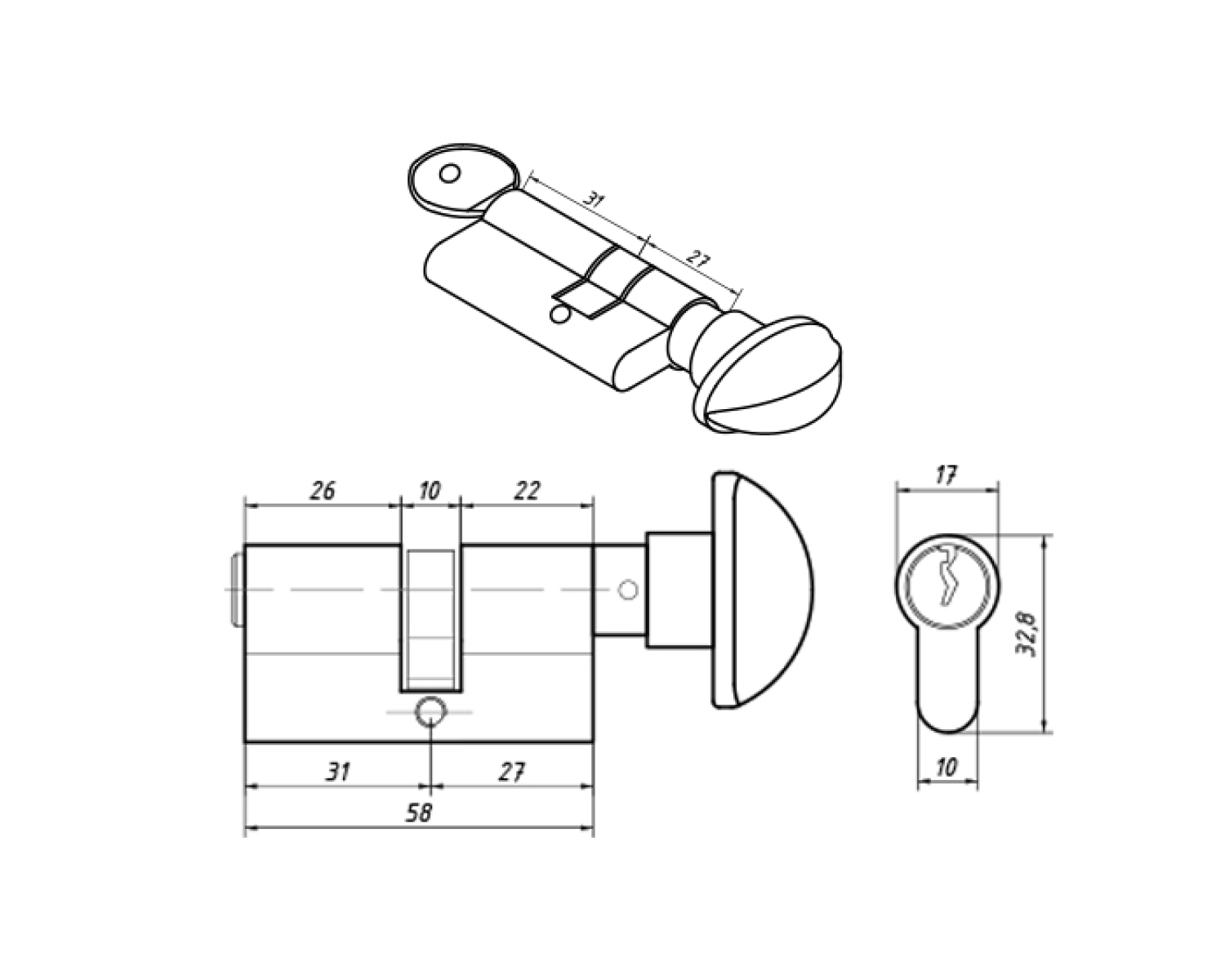 Розміри циліндра 30 * 30мм роблять його універсальним і дозволяють використовувати практично з усіма замками. Також він оснащений з однієї сторони воротком типу «Баранчик», а з іншого - ключем.