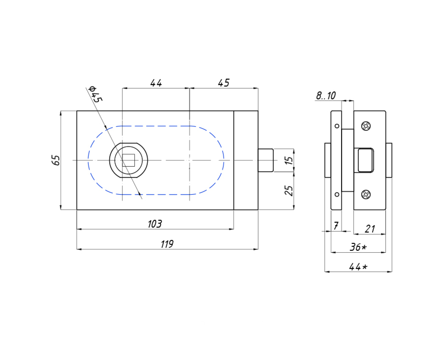 Прямокутна форма замку для скляних дверей відмінно підходить для любителів мінімалізму в дизайні.