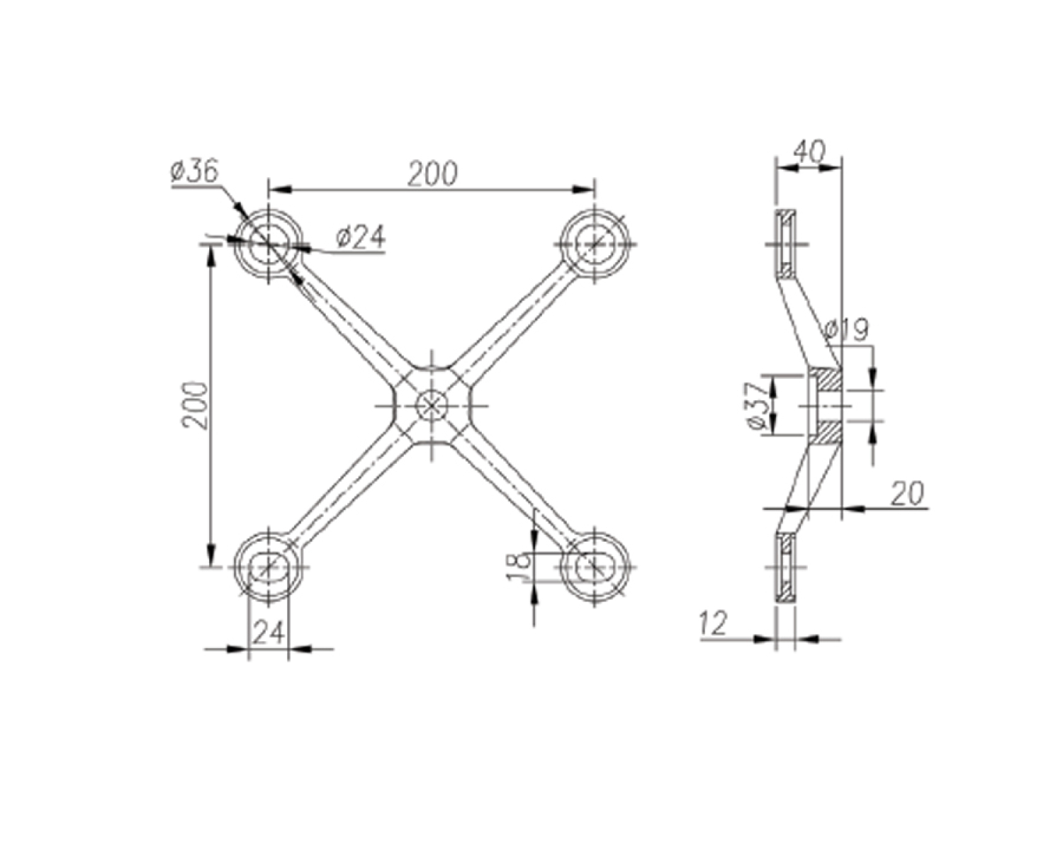 Спайдер чотирирукий для спайдерних систем скління фасадів