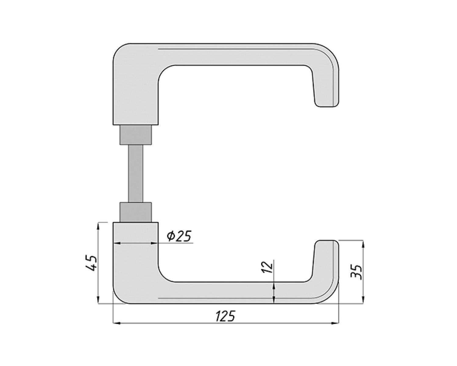 Вісь міжкімнатної ручки — стандартний квадрат 8 мм, що дозволяє використовувати її практично з будь-яким інтер’єрним замком для скляних дверей із каталогу.