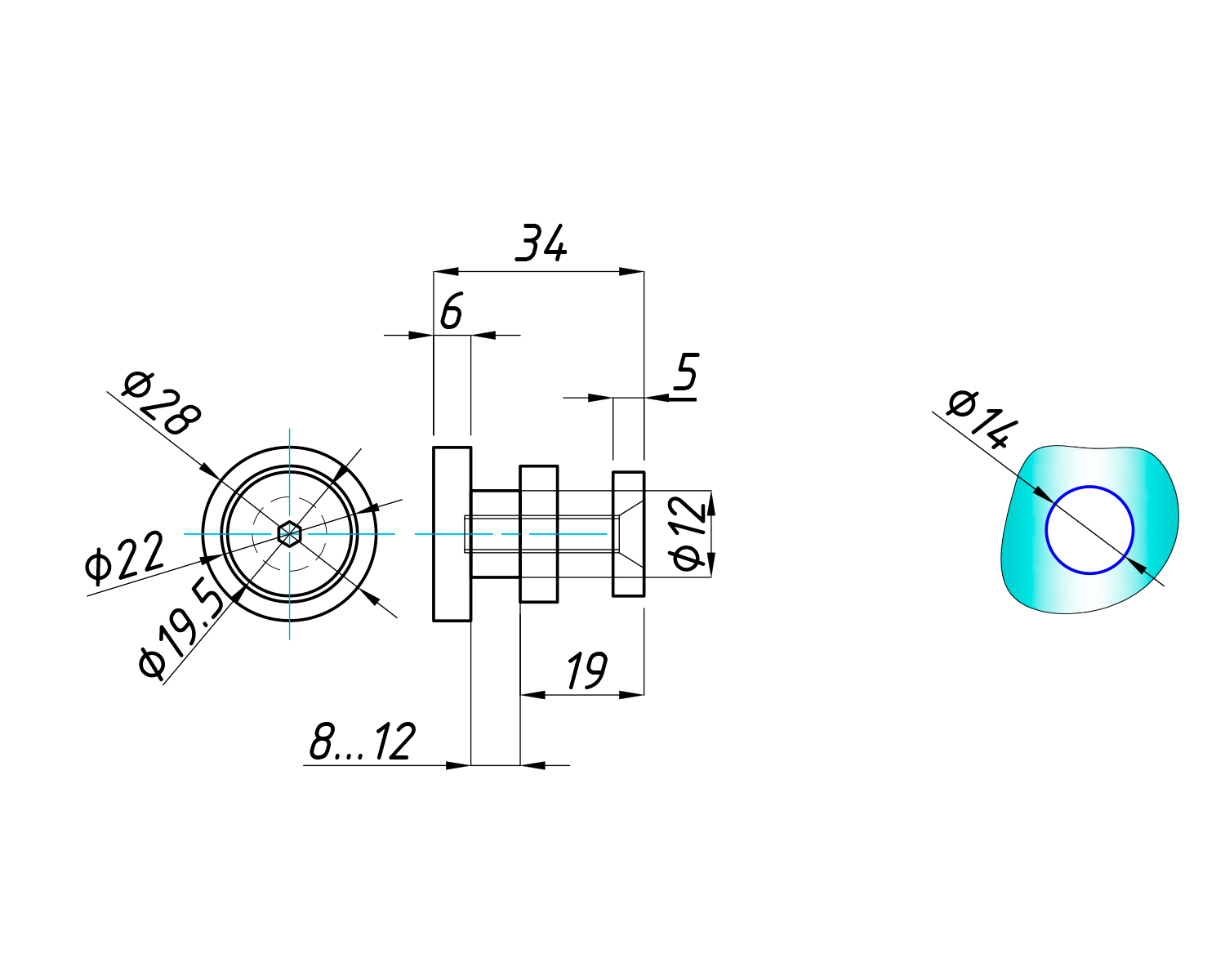 - З’єднує направляючу трубу 30×10 мм із нерухомим склом.
