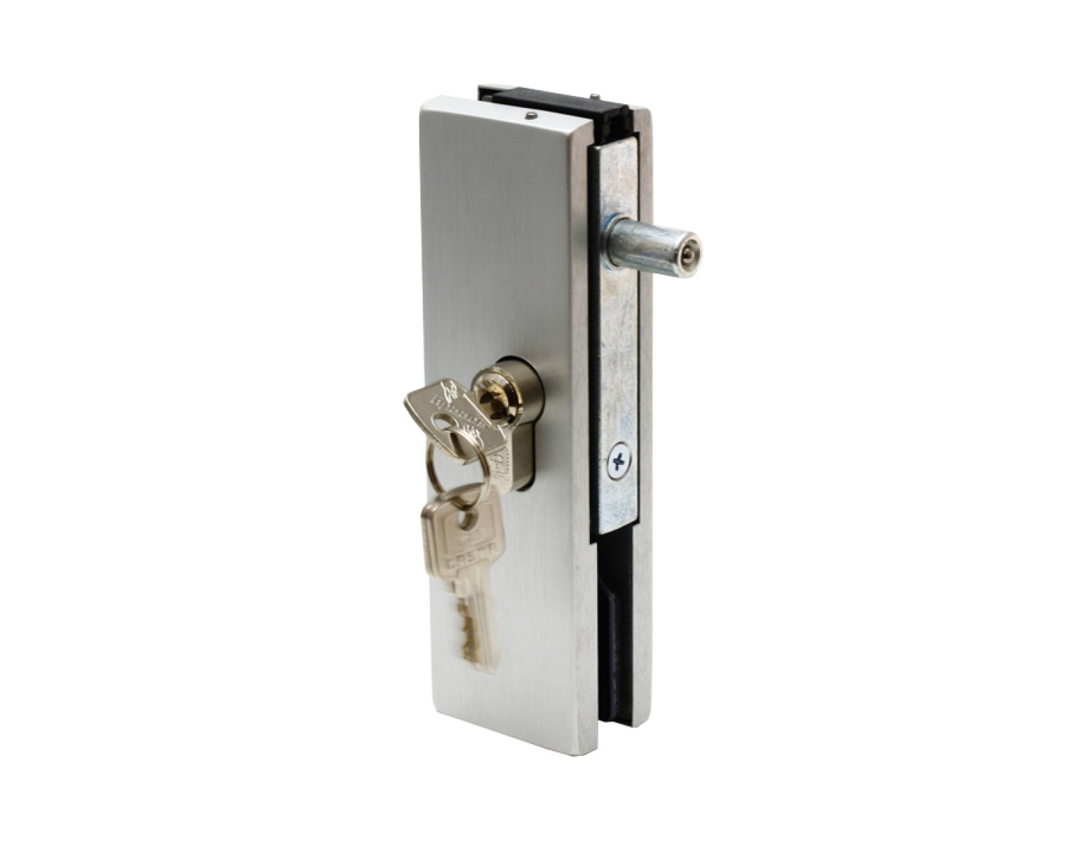 Замок для маятникових скляних дверей встановлюється в нижньому або у верхньому куті дверей. У комплекті йде циліндр та комплект ключів.
