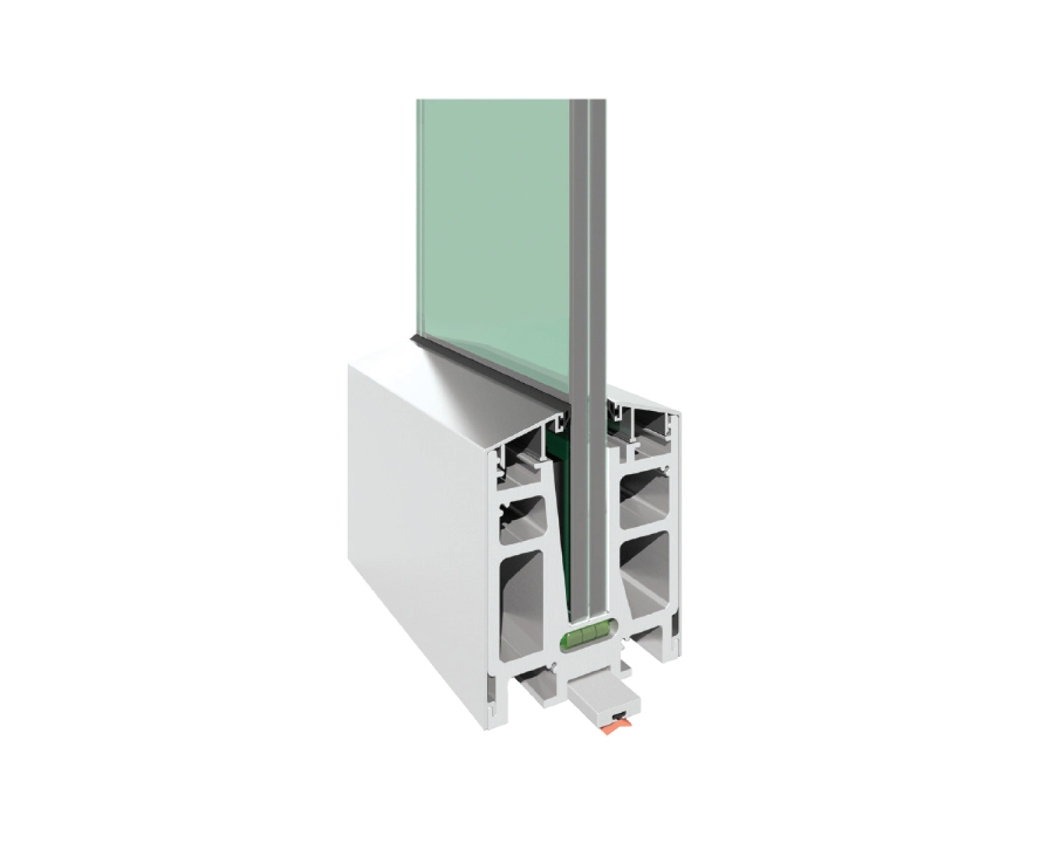 В Системі С50 встановлюється прямо на підлогу з кроком три клеми на метр конструкції. Після установки клема системи безрамної огорожі закривається суцільними декоративними кришками