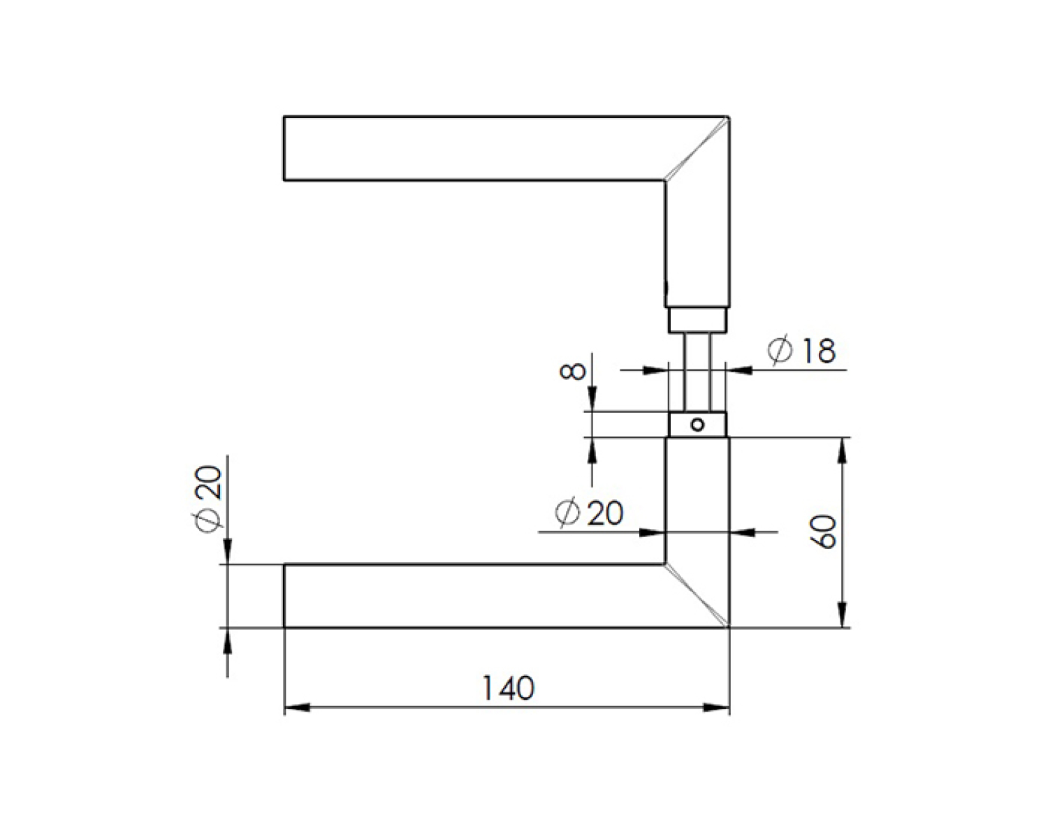 Інтер’єрна ручка для скляних дверей зі стандартною віссю під квадрат 8 мм, що дозволяє використовувати її практично з будь-яким міжкімнатним замком для скляних дверей із каталогу.