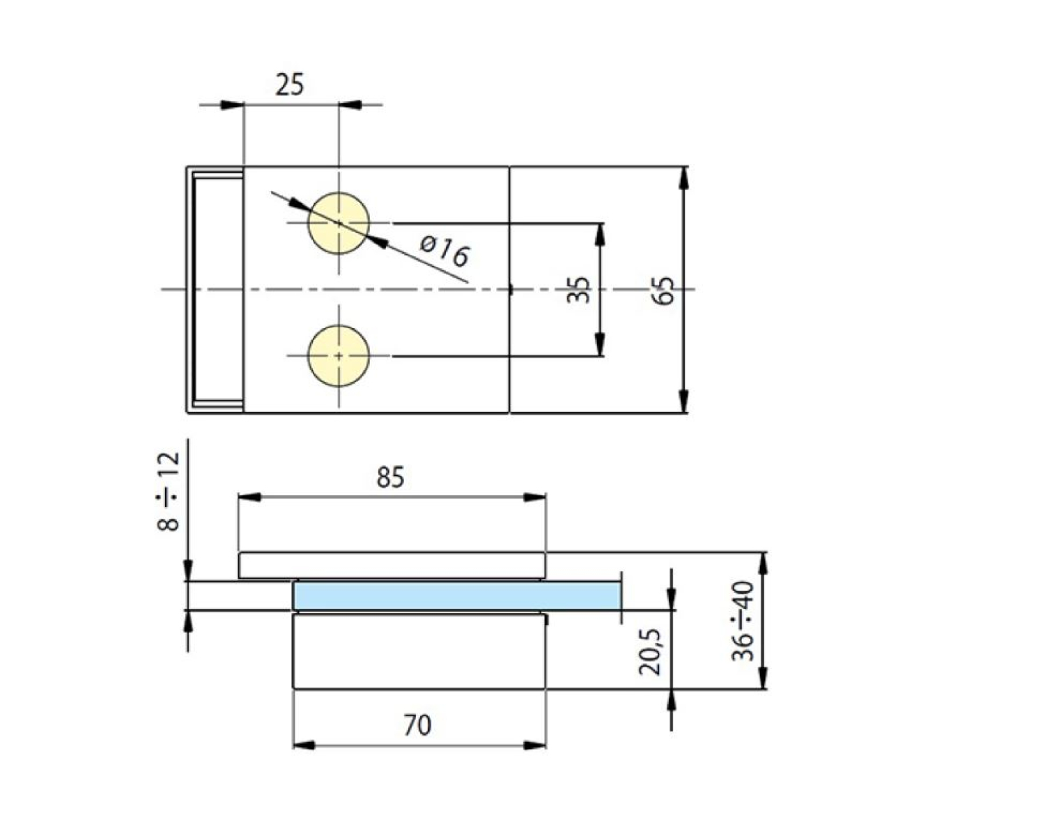 673W50 62 Відповідна частина (коротка) — елемент фурнітури для міжкімнатних скляних дверей, який забезпечує коректну роботу замкового вузла та підвищує жорсткість зони примикання полотна. Встановлюється на скло товщиною 8-10 мм навпроти інтер’єрної ручки на нерухомому бічному склі. Така конфігурація гарантує правильне змикання полотна і надійне притягування при закриванні, зменшуючи люфти та вібрації. Підходить для побутових і комерційних інтер’єрів.
