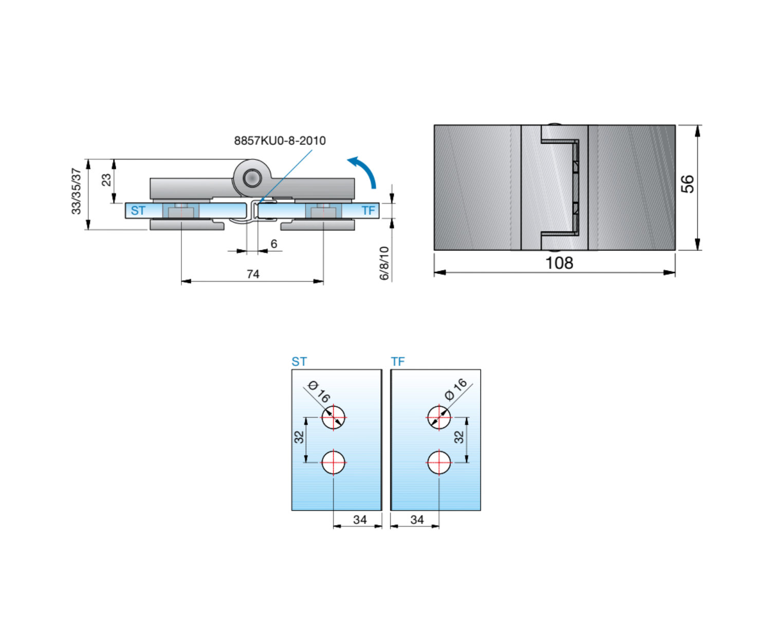 Основні характеристики 8162ZPVD35 Петля скло/скло з фіксацією 180 град (без розриву ущ.)