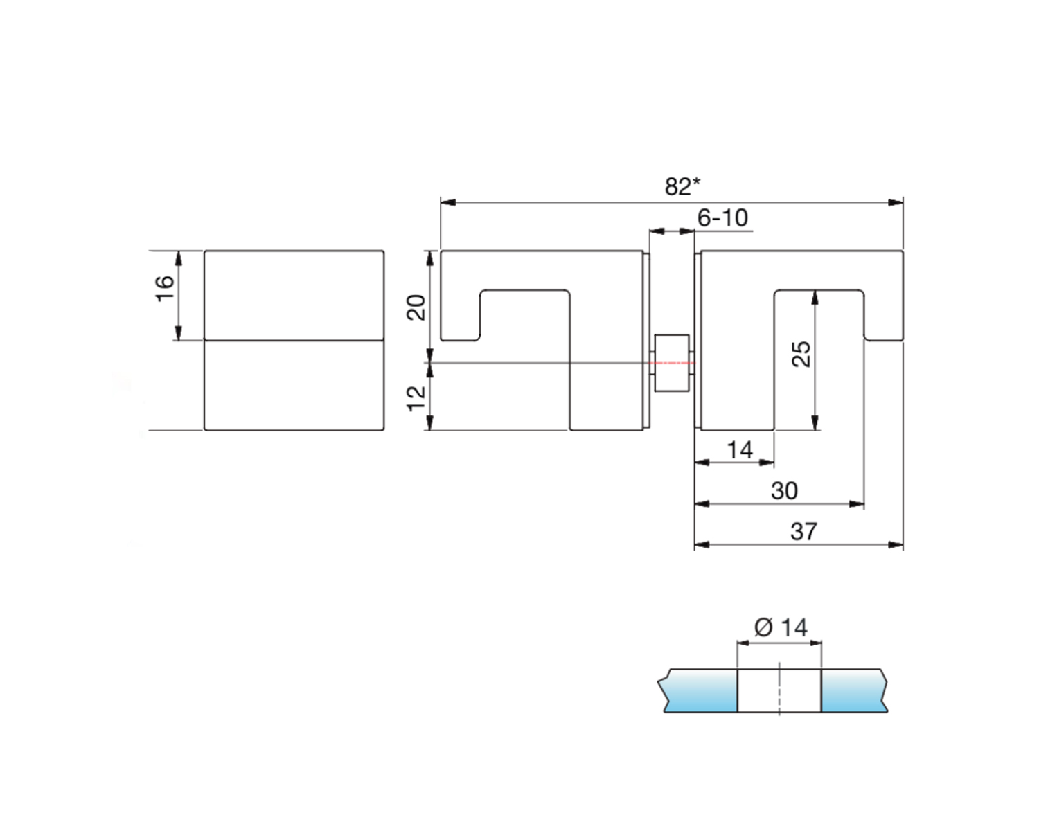 Дана ручка підходить для душових кабін з товщиною скла 6/8/10 мм.