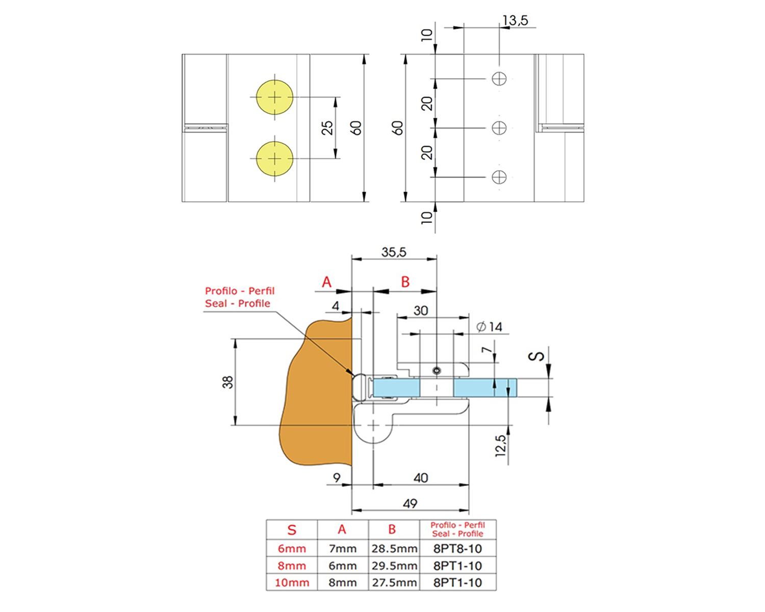 Опис 8410N Петля стіна-скло без фіксації (права-R, ліва-L), 14