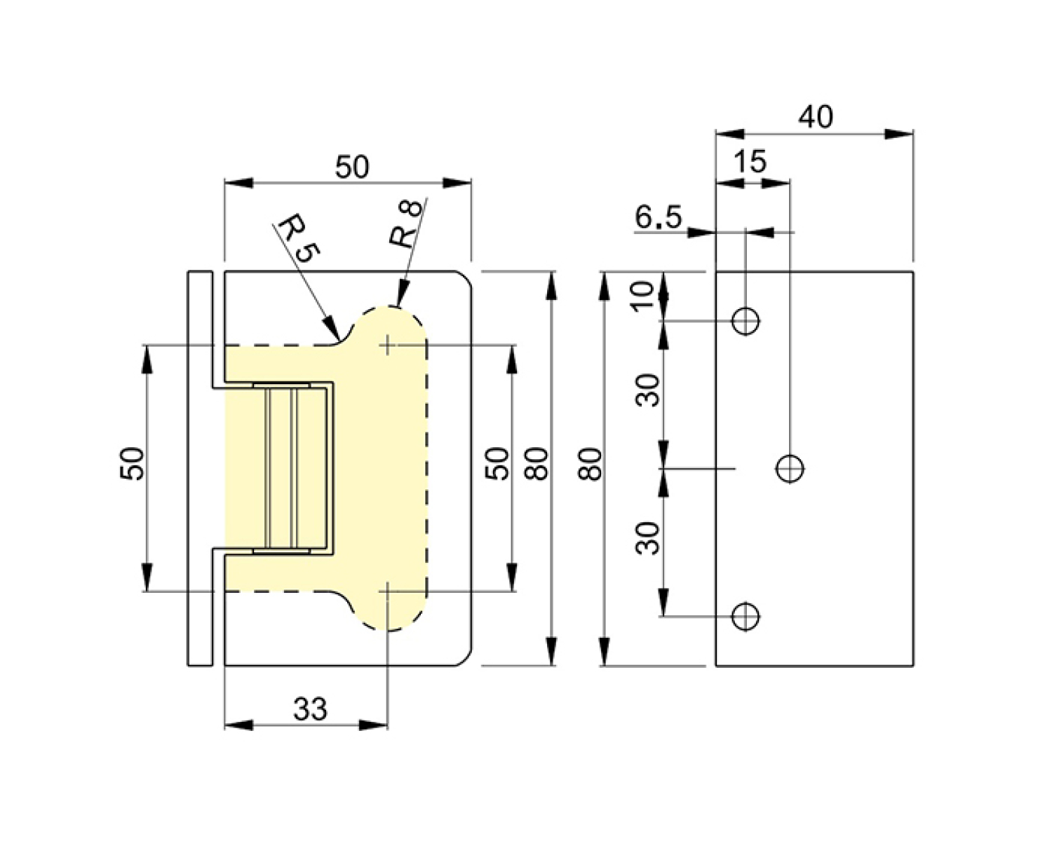 Монтажна пластина оснащена отворами під чотири дюбелі та розташовується по центру душової петлі, що дозволяє рівномірно переносити навантаження на несучу поверхню.