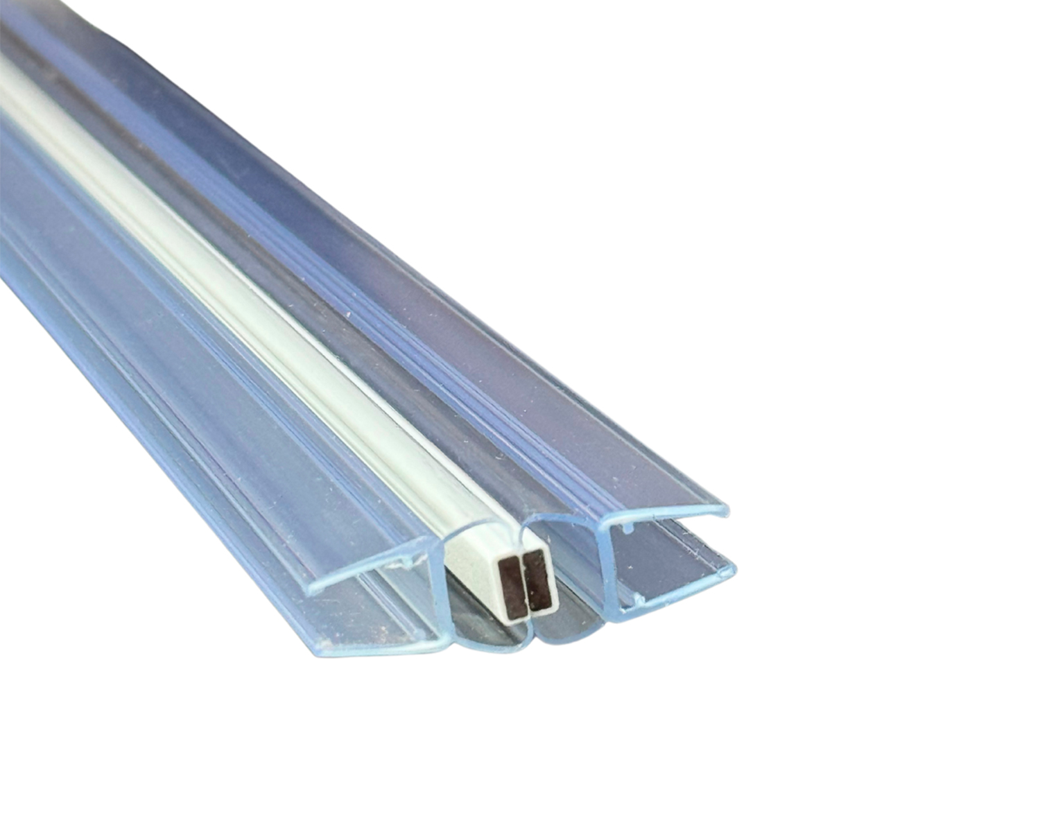 8850KU0-8-2500 Магнітний ущільнювач 180° — це спеціальний ущільнювальний профіль, призначений для забезпечення щільного прилягання двох скляних полотен у душових системах. Завдяки інтегрованим магнітним вставкам ущільнювач надійно фіксує дверцята у закритому положенні, запобігаючи протіканню води та зберігаючи герметичність душової кабіни.