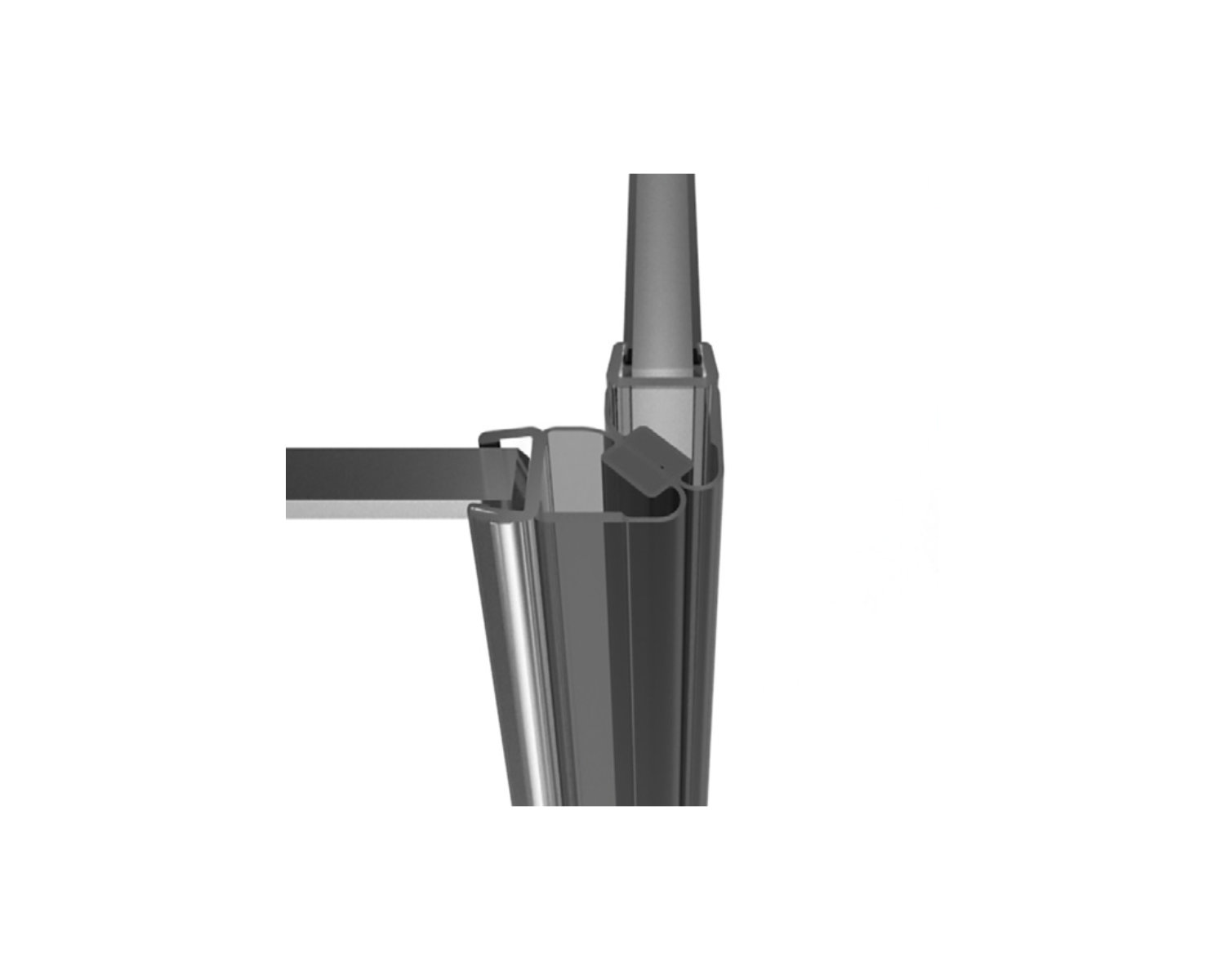 Магнітний ущільнювач призначений для душових систем зі скляними конструкціями, де необхідне з’єднання полотен під кутом 90 градусів. Він забезпечує щільне прилягання скла, мінімізує протікання води та підвищує герметичність душової зони.
