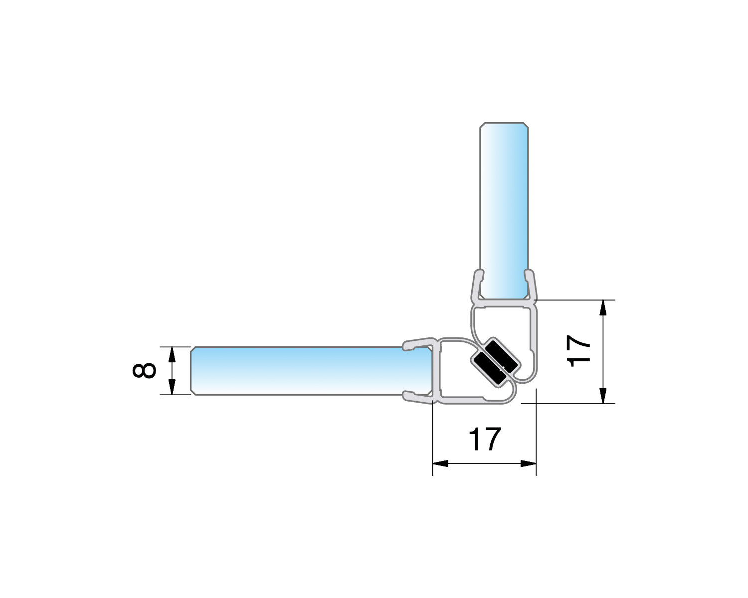 Опис 8851KU3-8K-2500 Ущільнювач магнiтний під 90 грд. для скла 6-8 мм, Black