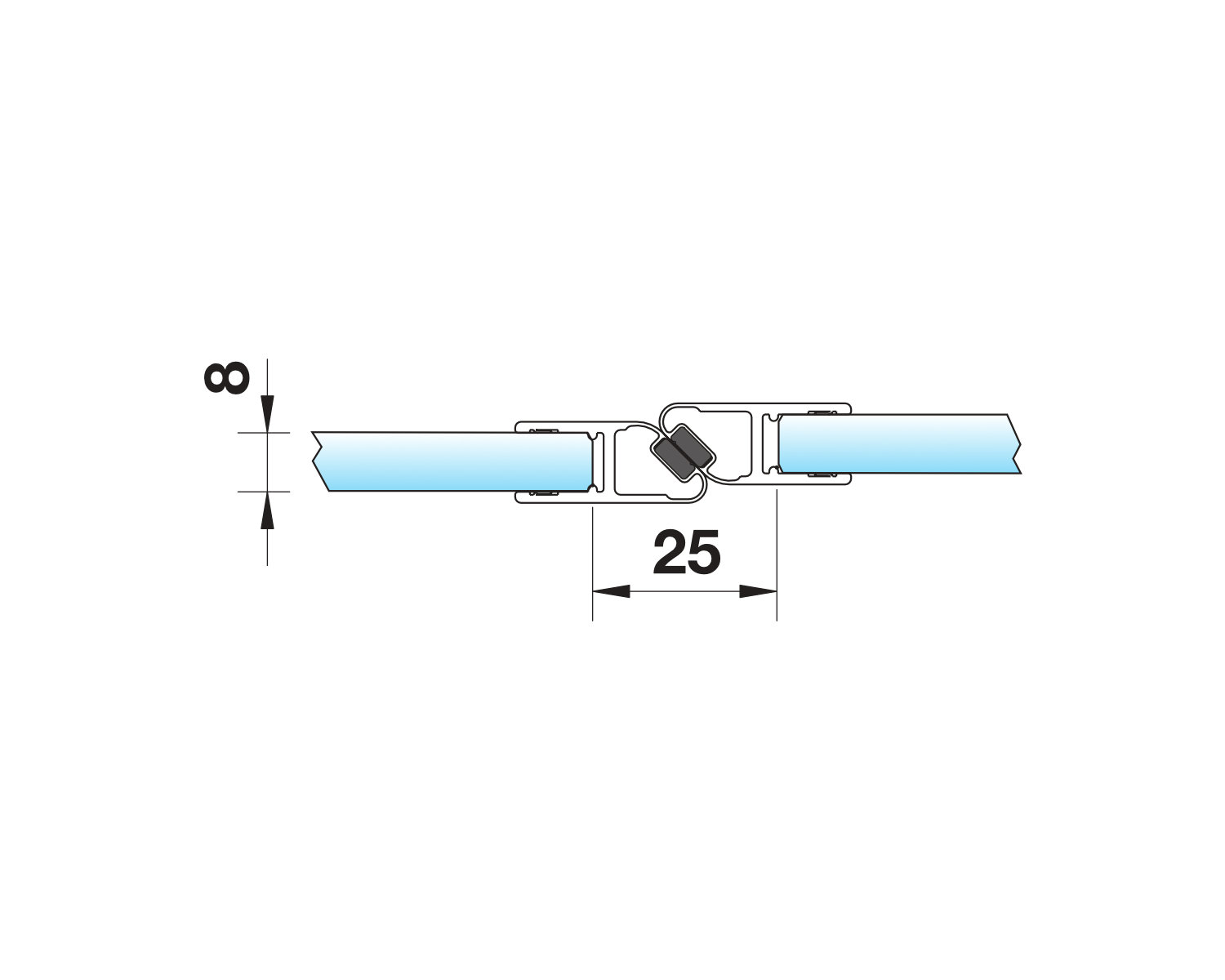 Магнітний ущільнювач при з'єднанні скла під кутом 180°.