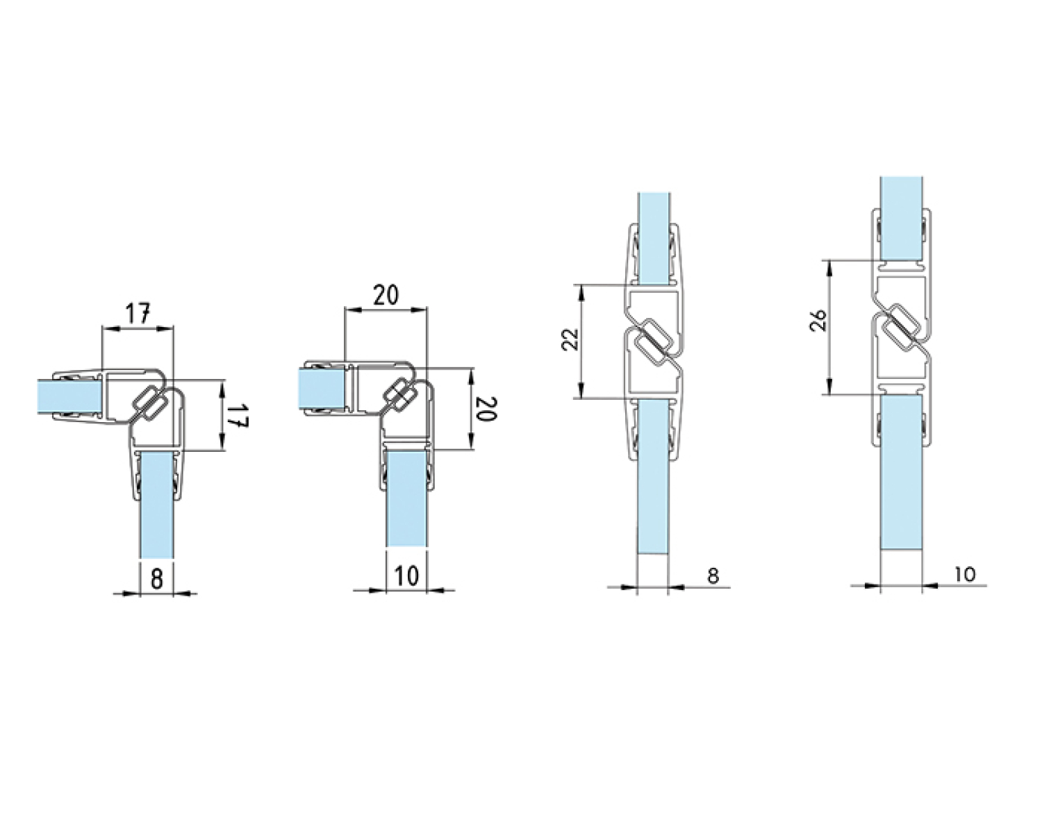 Ущільнювач для душових кабін може застосовуватися як на стику глухого скла з дверима, так й на двох стулках, а також на примикання двері до стіни.