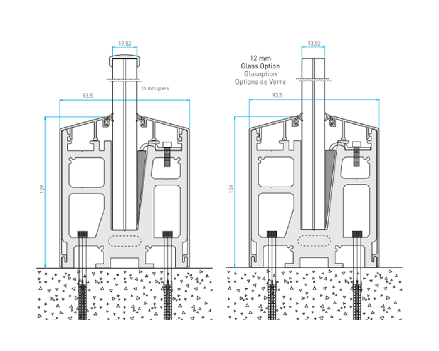 Систему скляного огородження С50 можливо встановлювати як на несучу поверхню, так й в рівень з підлогою. Рекомендована комплектація на 1 м.п: