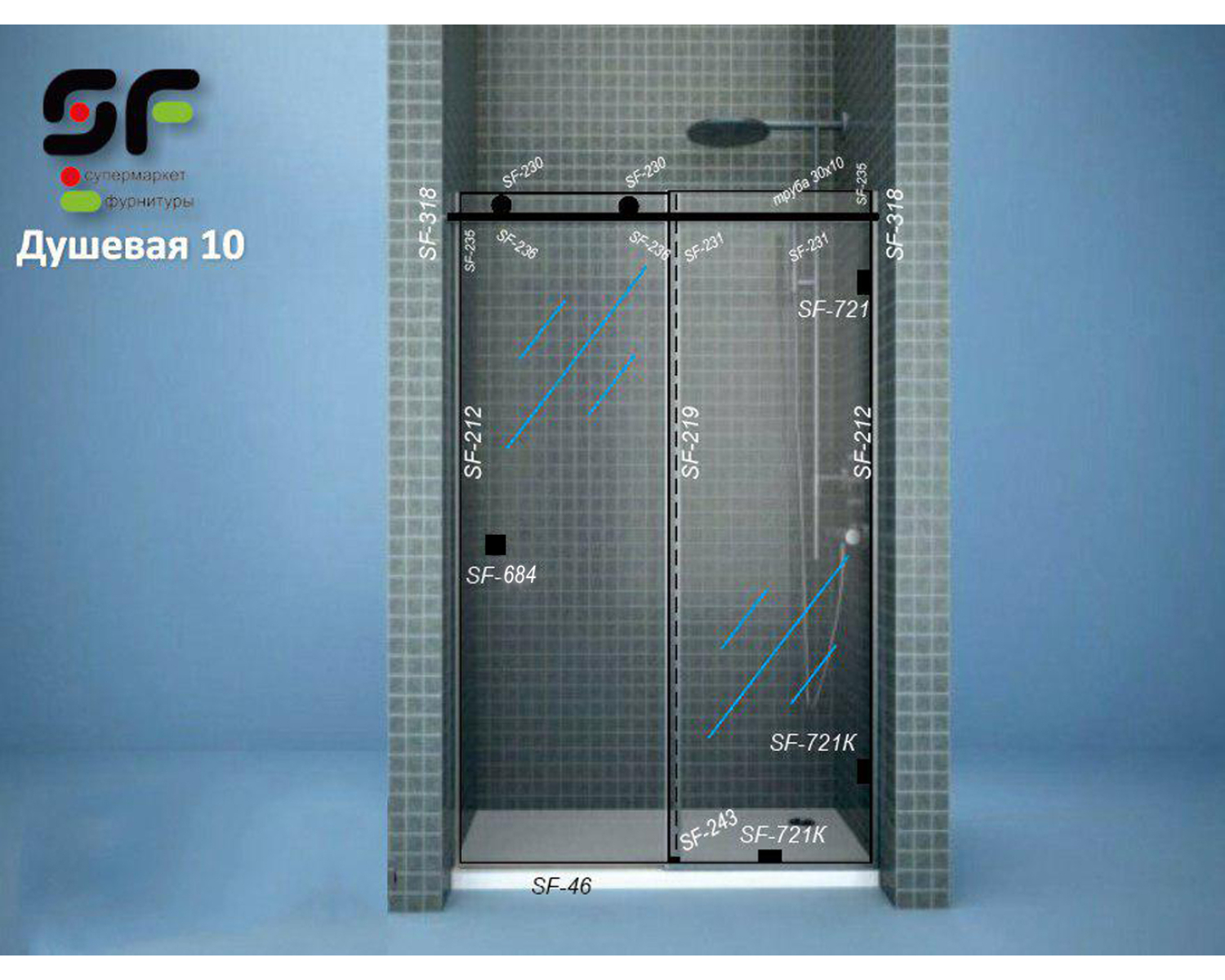 - SF-230 Ролик верхній для душа під трубу 30*10 - 2 шт.