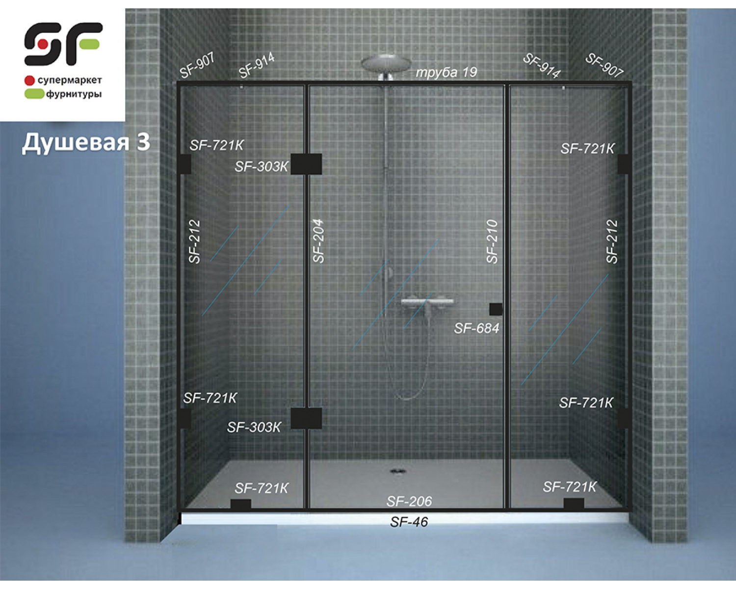 - SF-721К Конектор стіна-скло 90 град - 6 шт.