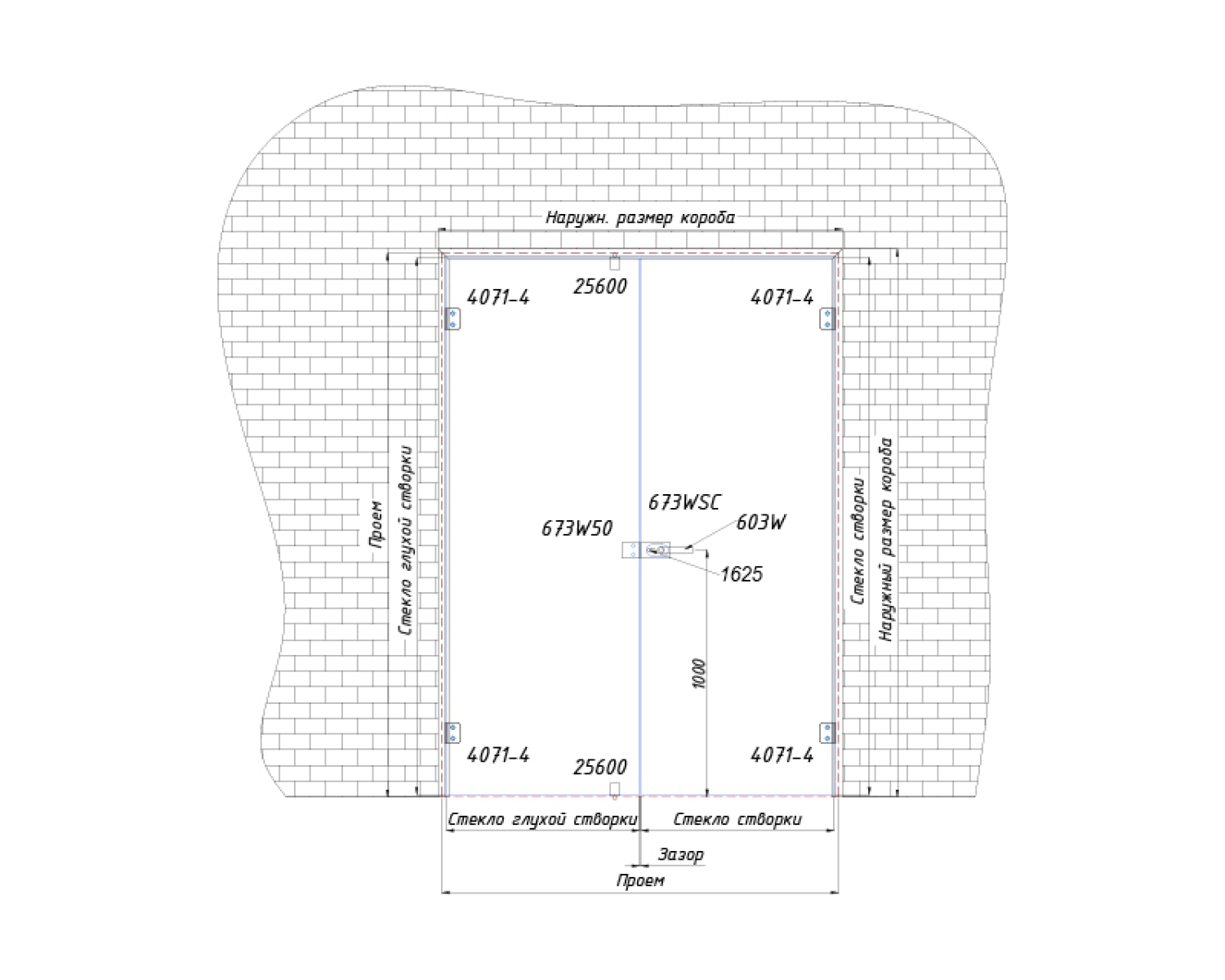 Z-образна двостулкова інтер'єрна коробка для міжкімнатних скляних дверей, комплект № 11