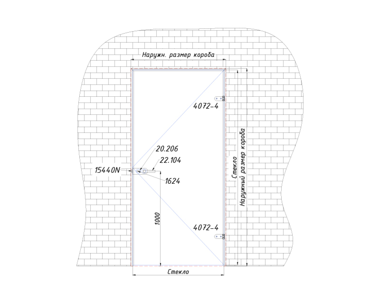 L-образна інтер'єрна коробка для міжкімнатних скляних дверей з замком під ключ округлої серії, комплект № 4А