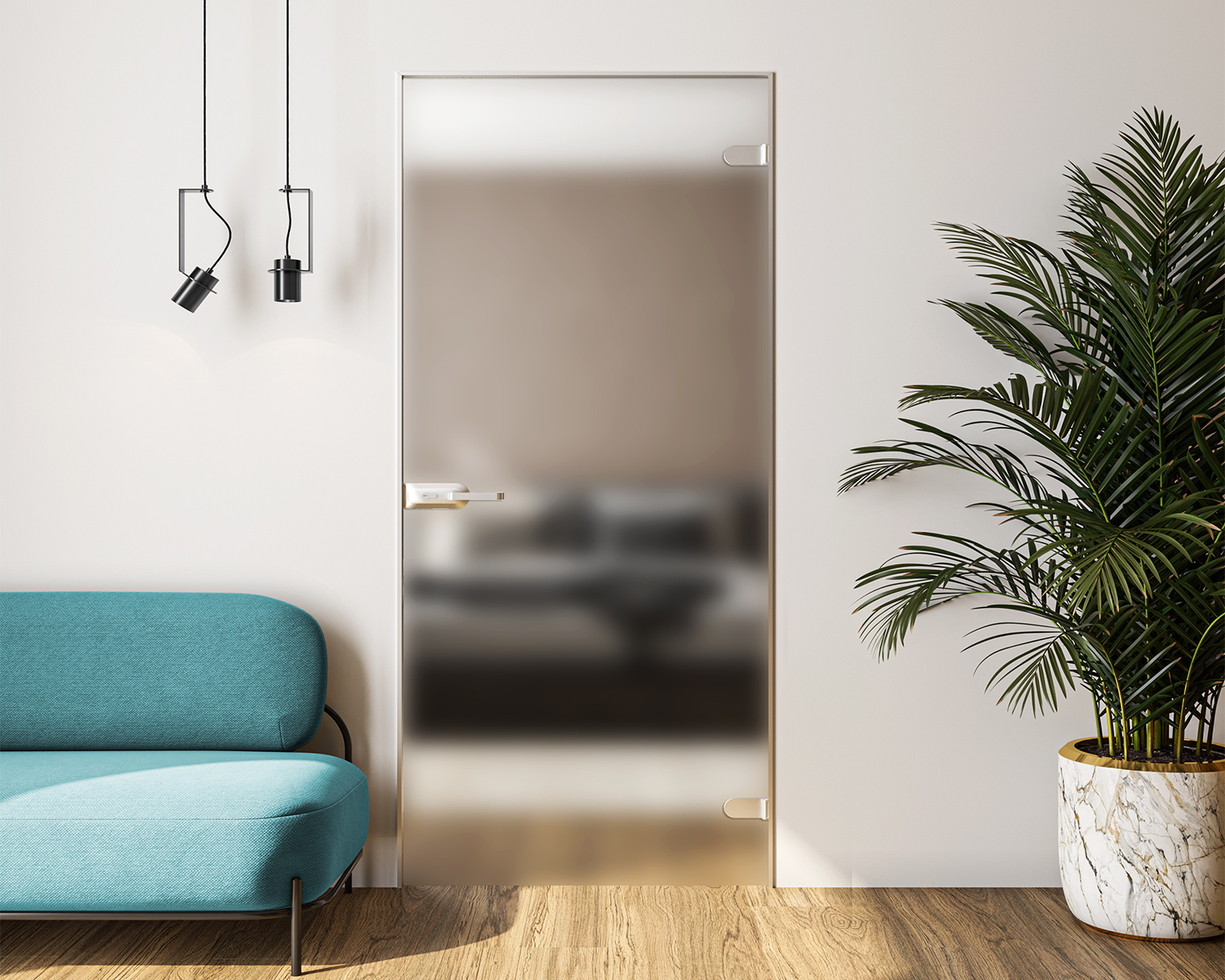 Витончені та дуже стильні скляні двері з L-образною коробкою звертають на себе увагу й будуть гідно оцінені вашими гостями.