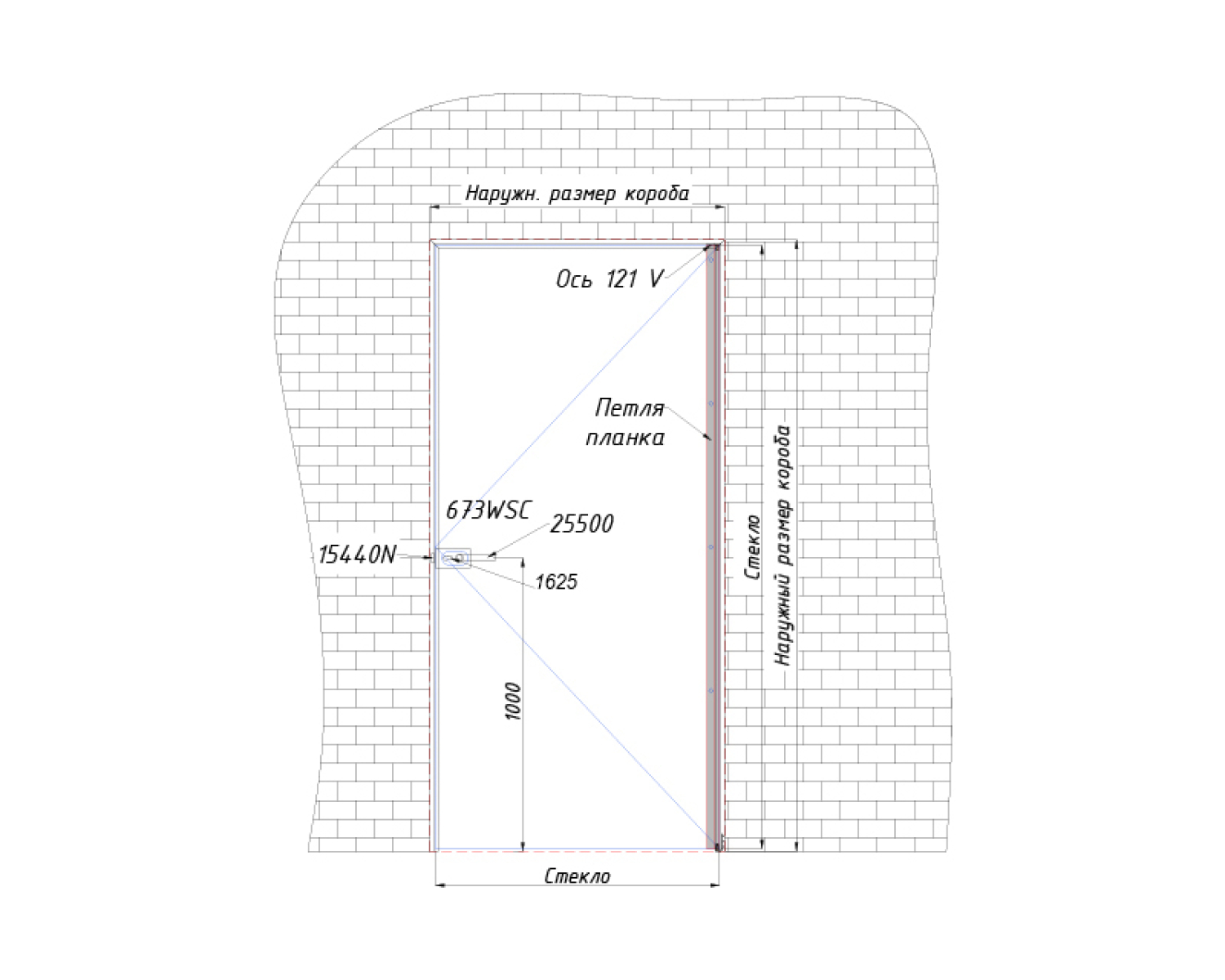 L-образна інтер'єрна коробка для міжкімнатних скляних дверей з петлею-планкою та замком під ключ, комплект № 5А