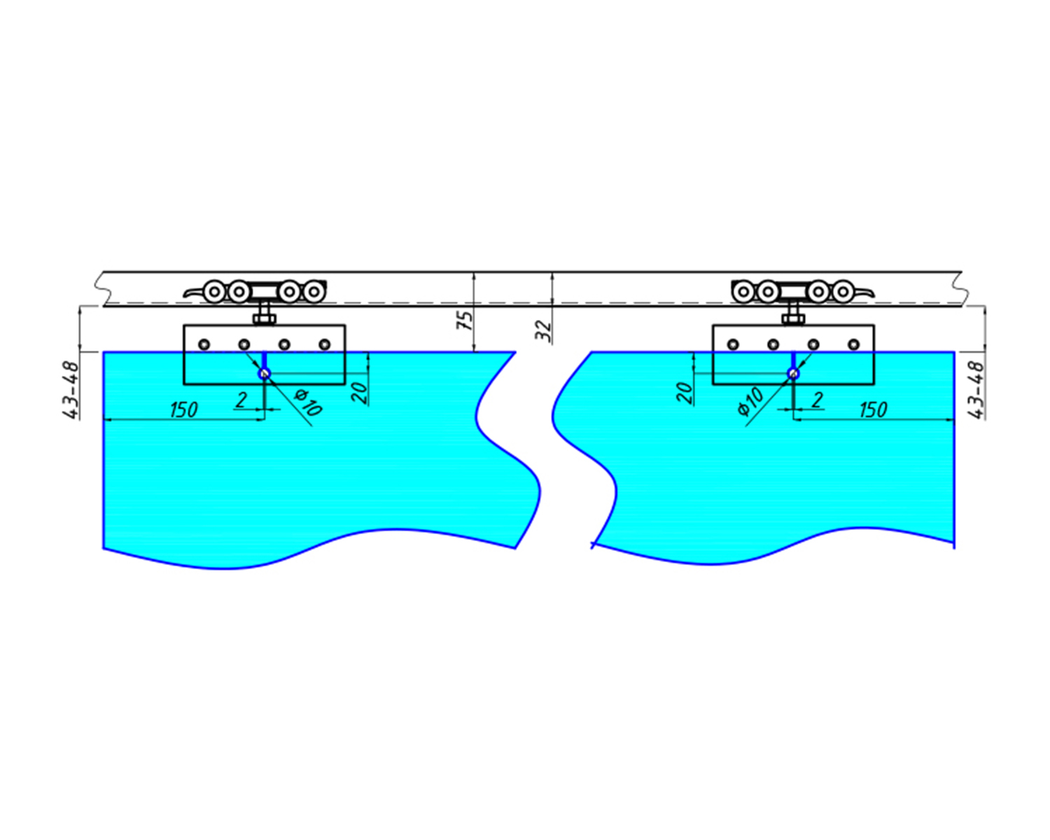 Посилена каретка з додатковими роликами виконана з нержавіючої сталі марки sus304, що дозволяє витримувати навантаження до 120 кг.