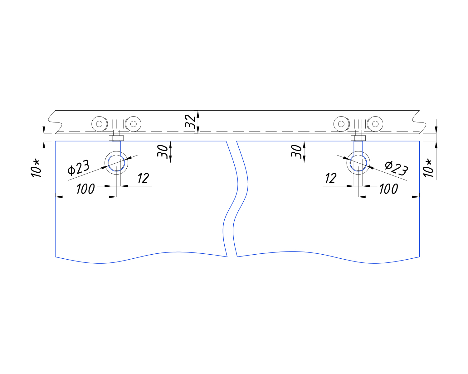 Каретка роликів виконана з нержавіючої сталі марки sus304, що дозволяє використовувати скло товщиною 10 мм, а максимальна ширина стулки розсувної системи може досягати 900 мм. Допустима вага на один комплект — 60 кг.