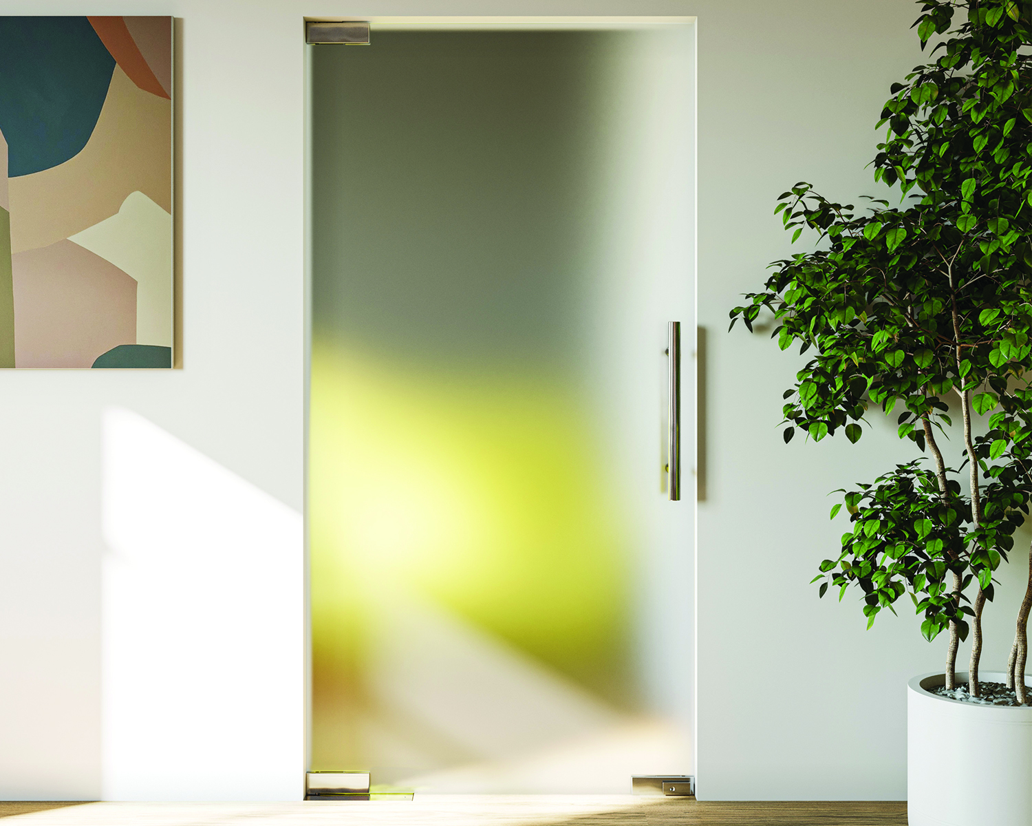 Комплект фурнітури для маятникових скляних систем дозволяє відкривати двері в обидві сторони: назовні та всередину.