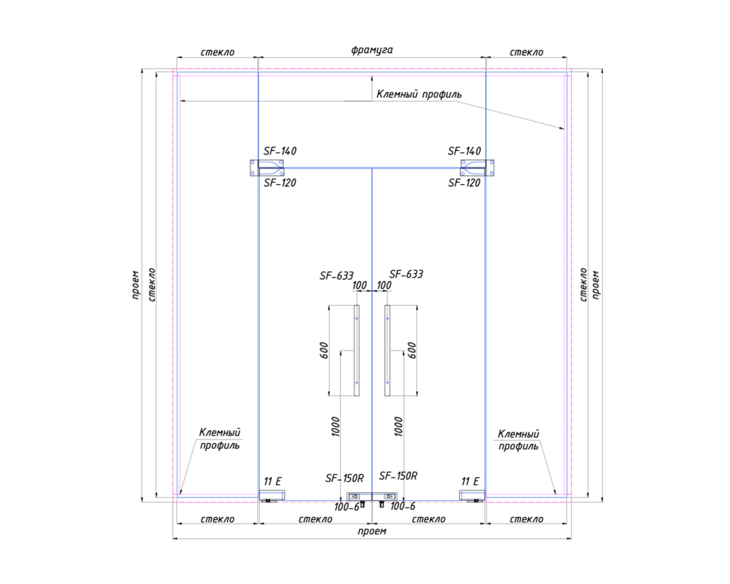 Ефективна та одна з найпоширеніших моделей перегородок для маятникових скляних дверей.