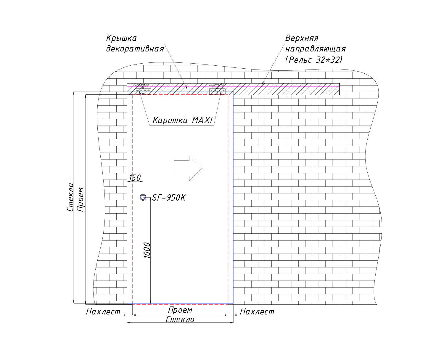 Кріплення розсувної системи здійснюється на стіну. Всі видимі деталі закриваються декоративною кришкою шириною 110 мм.