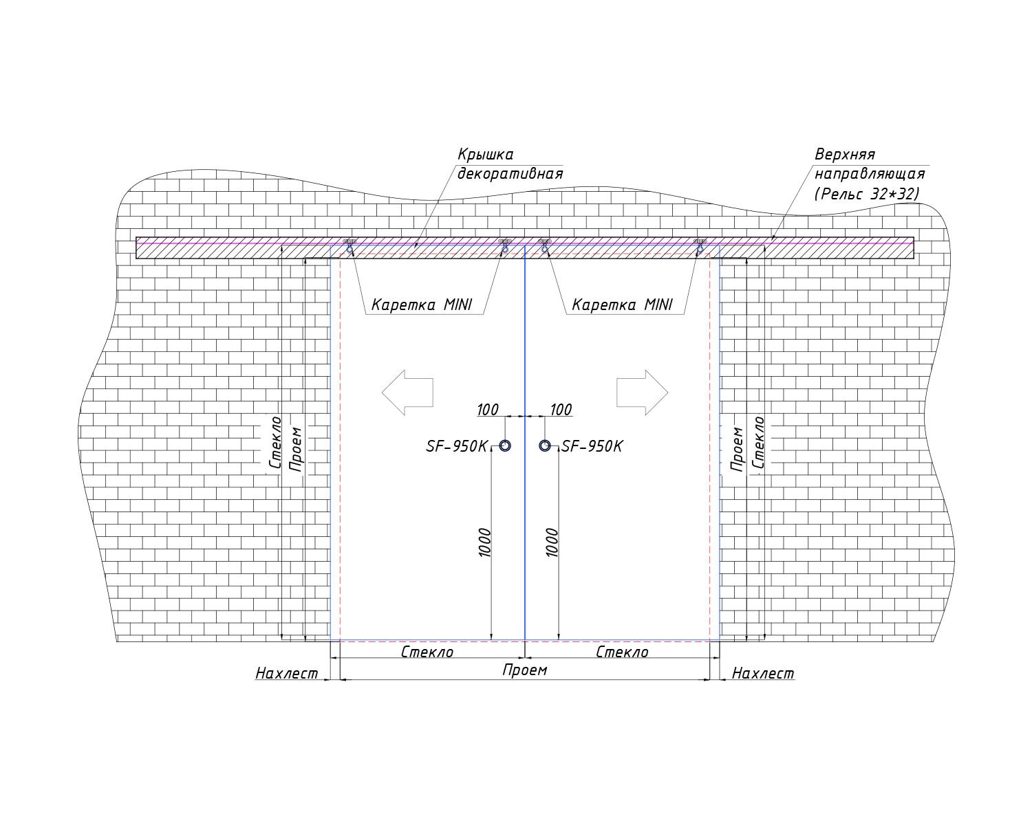 Кріплення розсувної системи здійснюється на стіну та складається з двох дверей, які роз’їжджаються в різні боки.
