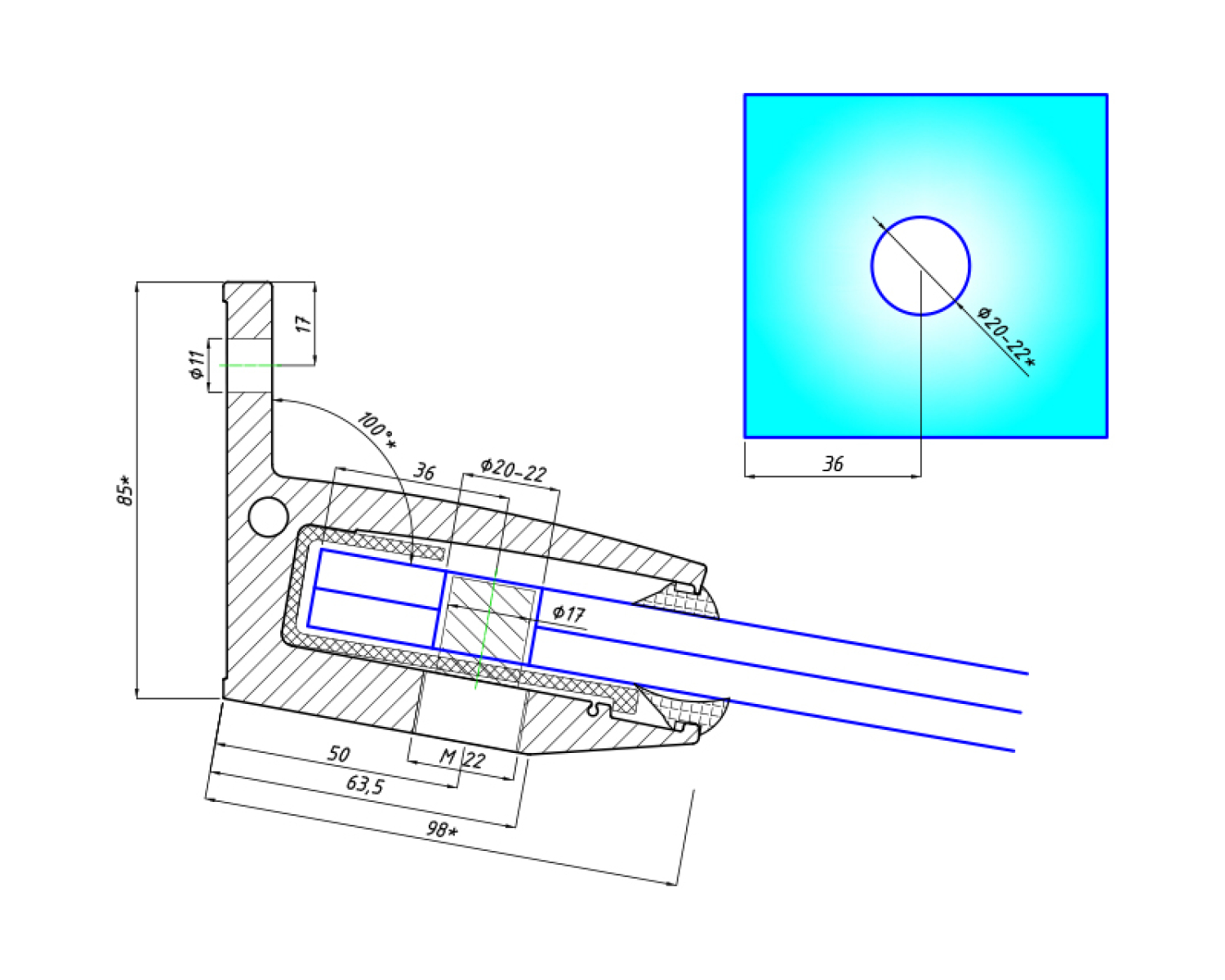 Дана система для скляних козирків розрахована на використання загартованого скла товщиною 17,52 мм (триплекс 8 + 8).