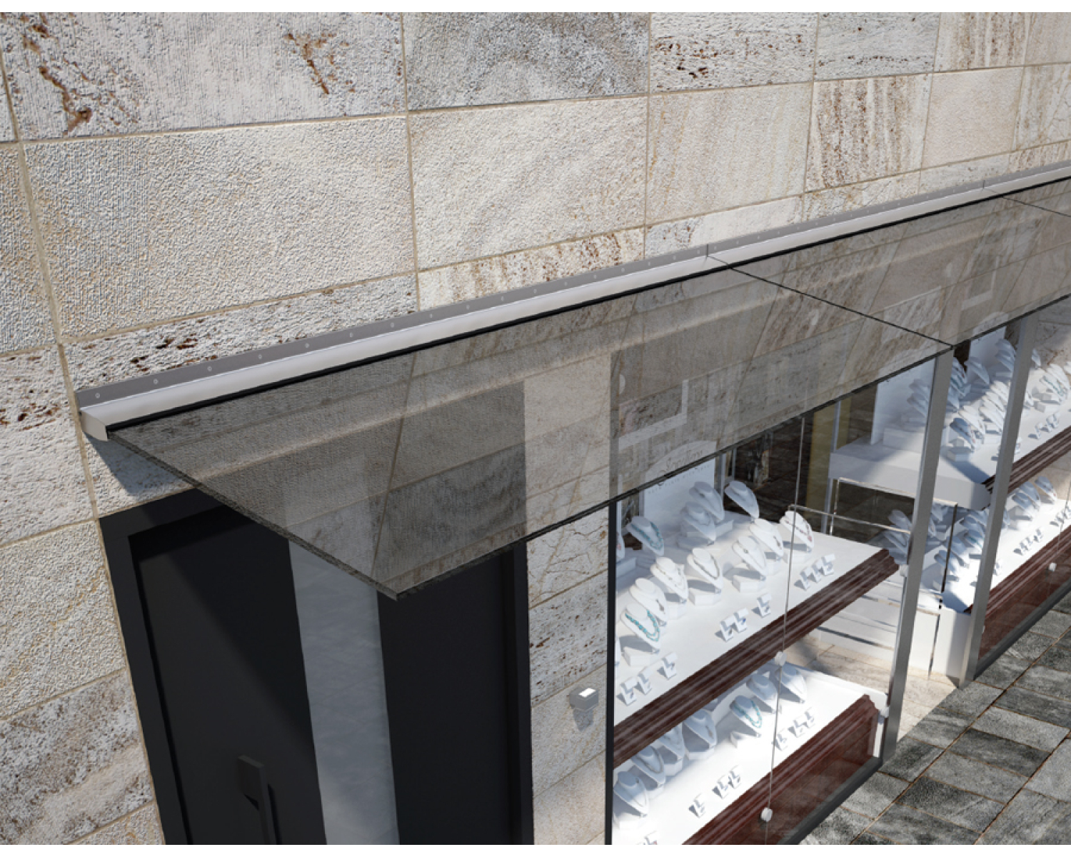 Просте, елегантне та одночасно надійне рішення для скляних козирків без використання додаткових вант та тросів.
