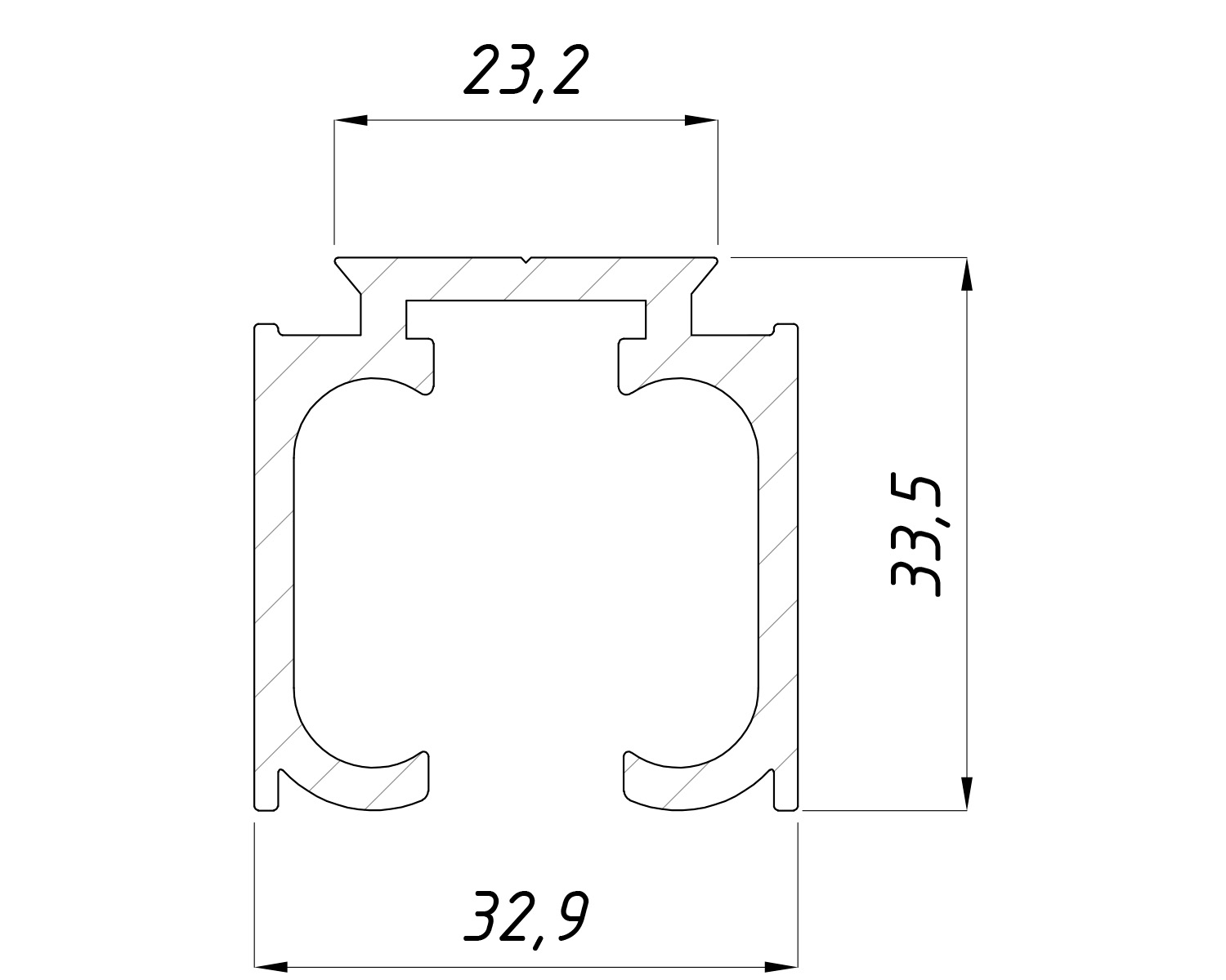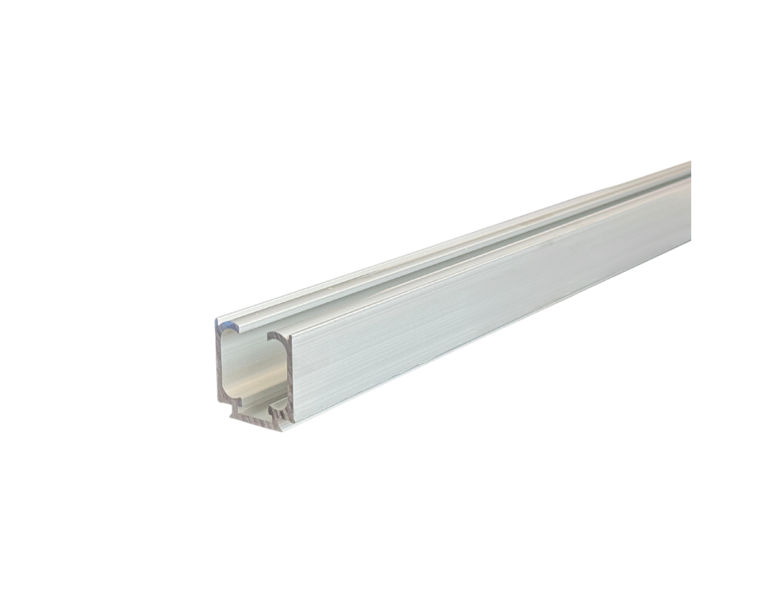 Верхня направляюча рейка для розсувної системи Mini має спеціальні канали з округленими формами. Вони точно повторюють профіль роликів, завдяки чому навантаження рівномірно розподіляється з каретки на направляючу. Це рішення знижує зношування механізму та забезпечує тихий, плавний хід стулок. Така конструкція особливо важлива для систем із частим використанням, де пріоритетом є комфорт і довговічність.
