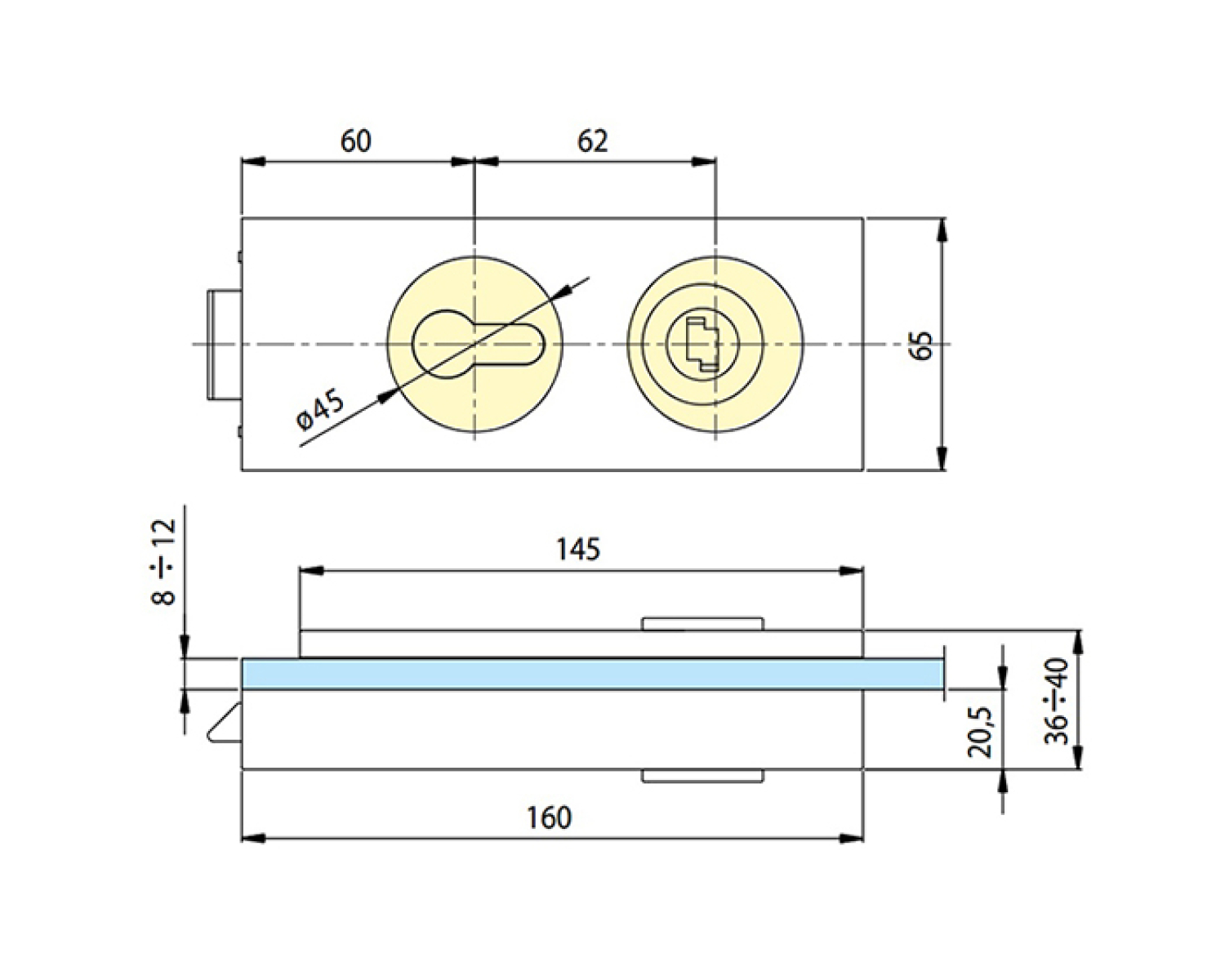 Интерьерный замок имеет стандартные габариты для замков этого типа, но обладает строгим и лаконичным дизайном. Прямоугольная форма межкомнатного замка отлично сочетается со всей концепцией стеклянных конструкций и хорошо подходит для любителей минимализма в дизайне.