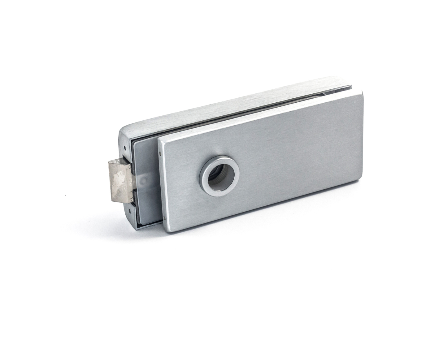 Интерьерный замок имеет стандартные габариты для замков этого типа, но обладает строгим и лаконичным дизайном. Прямоугольная форма межкомнатного замка отлично сочетается со всей концепцией стеклянных конструкций и хорошо подходит для любителей минимализма в дизайне.