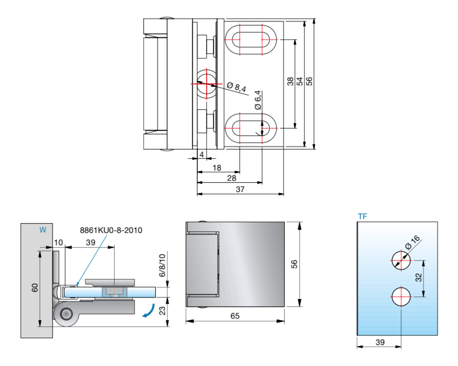 Описание 8152ZNPVD35 Петля стена/стекло с фиксацией 90 град (без разрыва уп.)