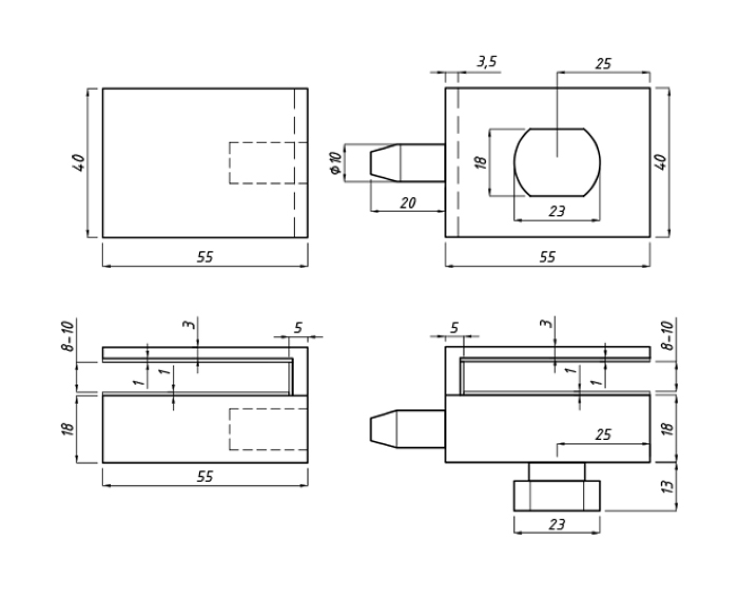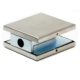 Основной особенностью замка является то, что он накладной и не требует фрезерования отверстий в стекле для его установки, что позволяет устанавливать его на конструкции, в которых наличие замка изначально не планировалось.