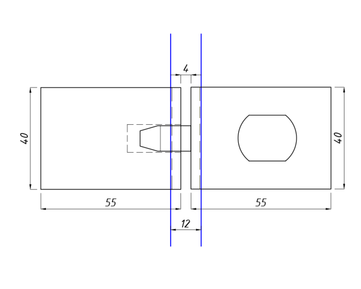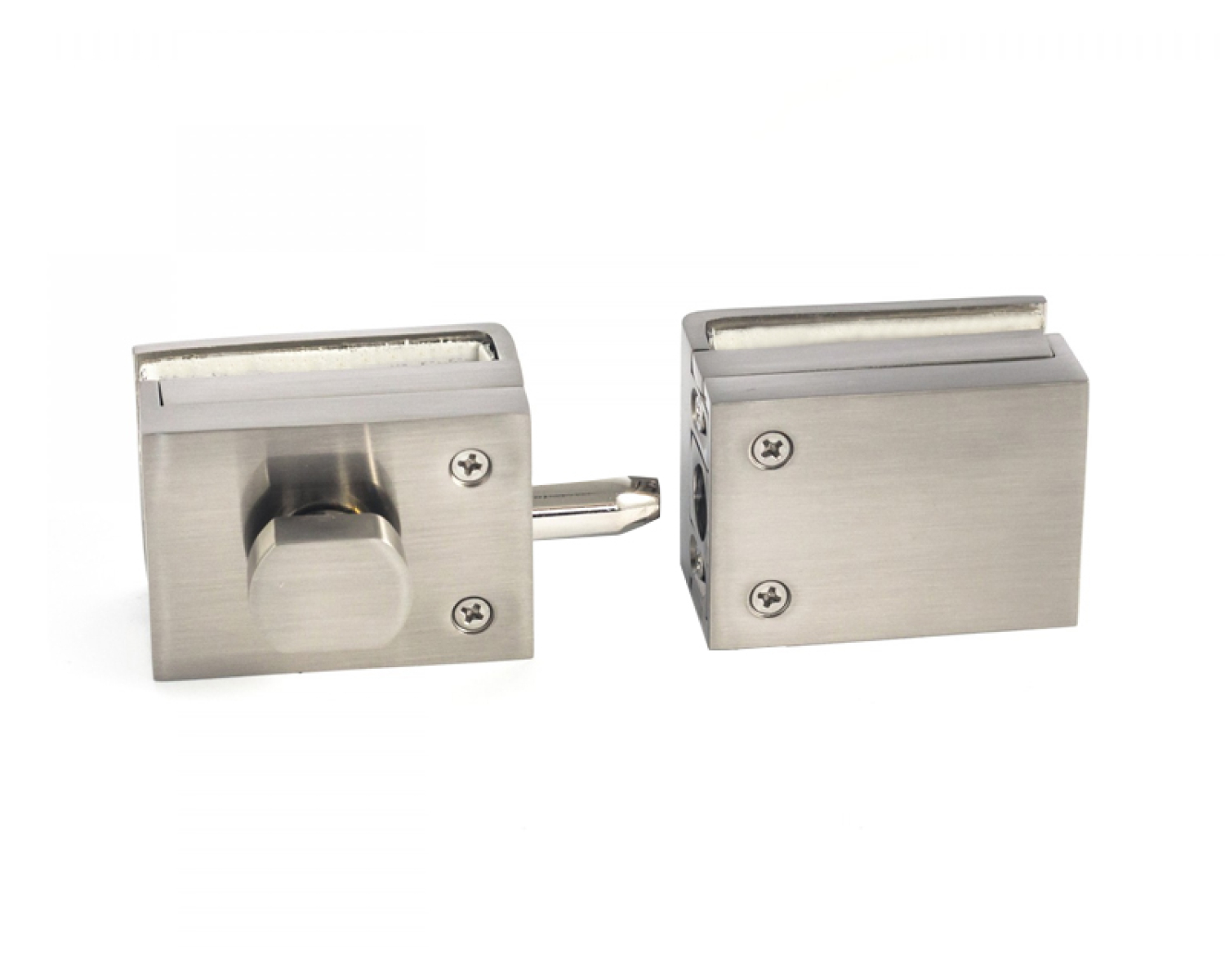 В комплекте к замку для маятниковой двери идет ответная часть на стекло, чей форм-фактор полностью соответствует самому замку.