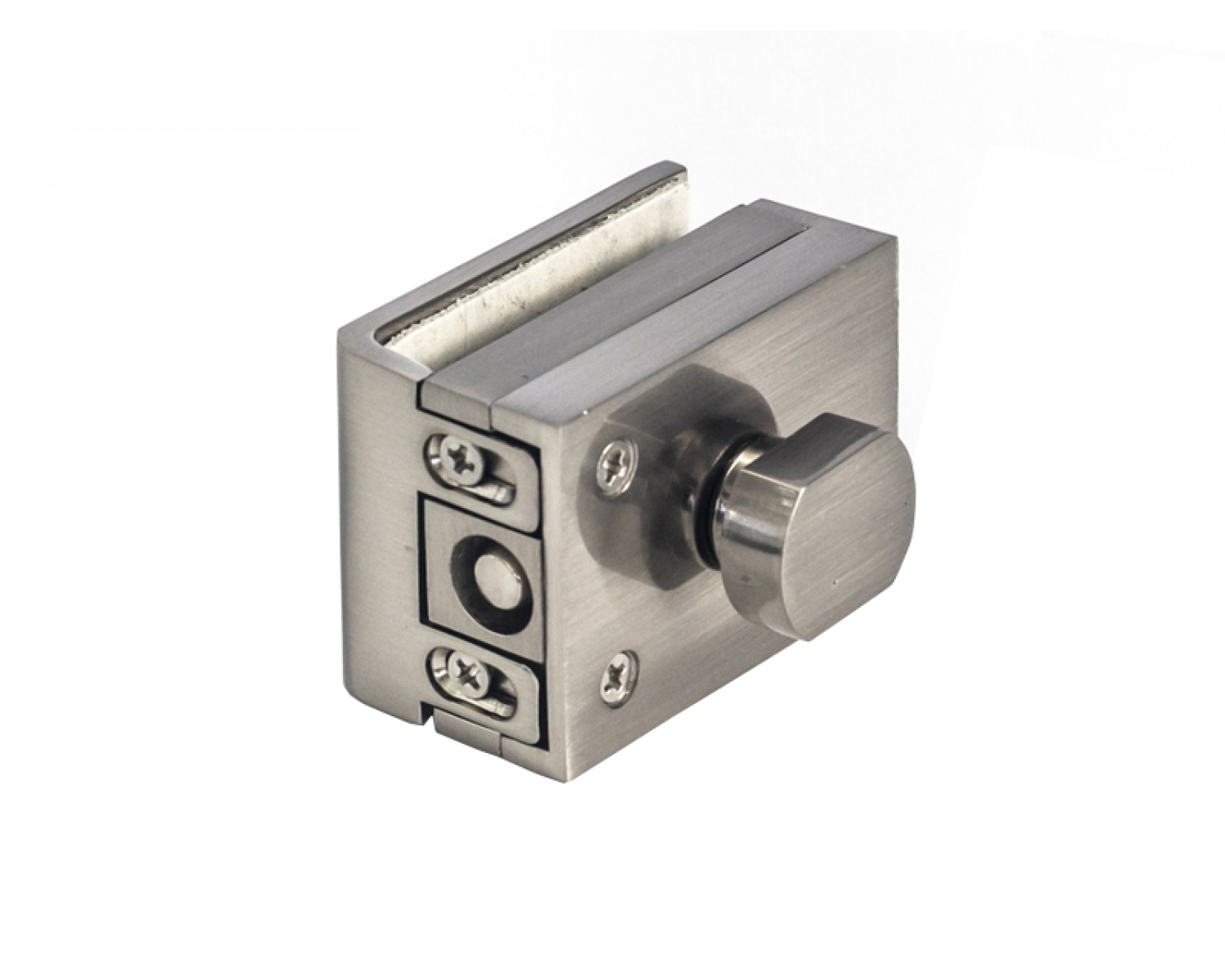 Замок для маятниковой стеклянной двери хорошо зарекомендовал себя как фиксатор штульповых дверей, а также как замок к туалету и сантехническим перегородкам.