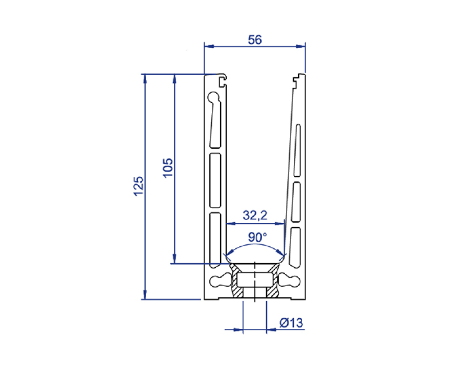Данный тип системы стеклянного ограждения рассчитан на использование стекла высотой до 1300 мм и стекла триплекс 12,76мм, 17,52мм, 21,52мм. Несущий профиль ограждения для лестницы выполнен из высококачественного алюминия и выдерживает нагрузку до 1,0 кН.