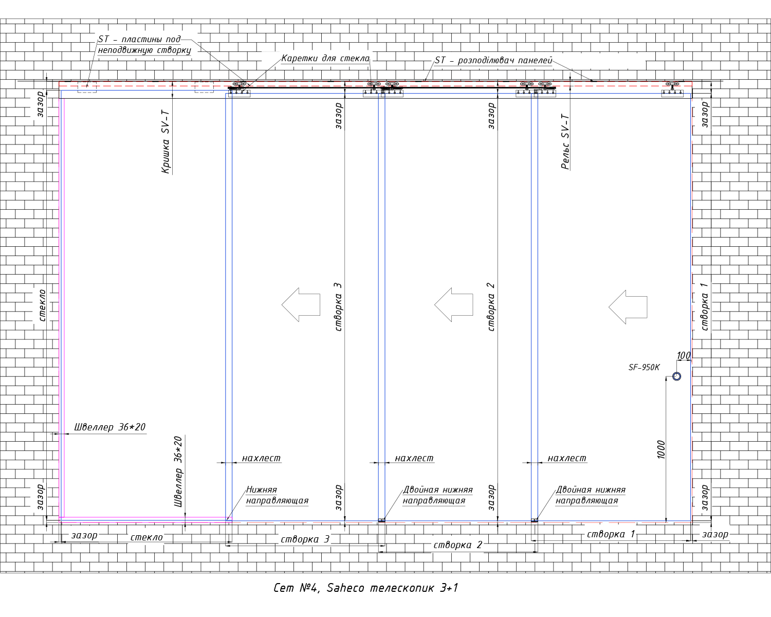 - SV-T Система для Телескопік 1 фікс+3 рух панелі 80 кг — 1 комплект