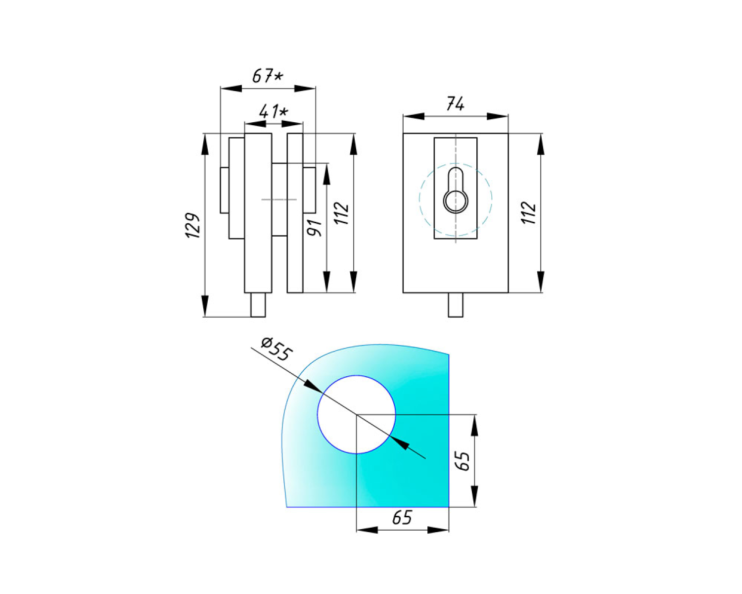У разі якщо суцільноскляна конструкція являє собою двостулкові двері, використовується спільно з відповідною частиною на скло SF-034К.
