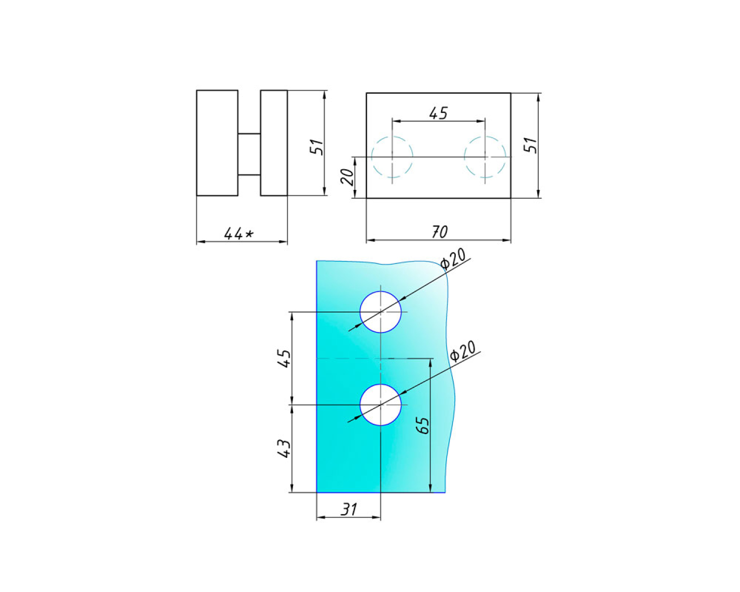 Відповідна частина на скло до замку SF-034 для маятникових скляних дверей